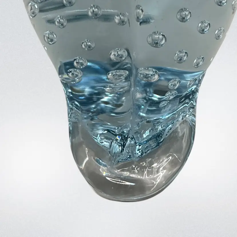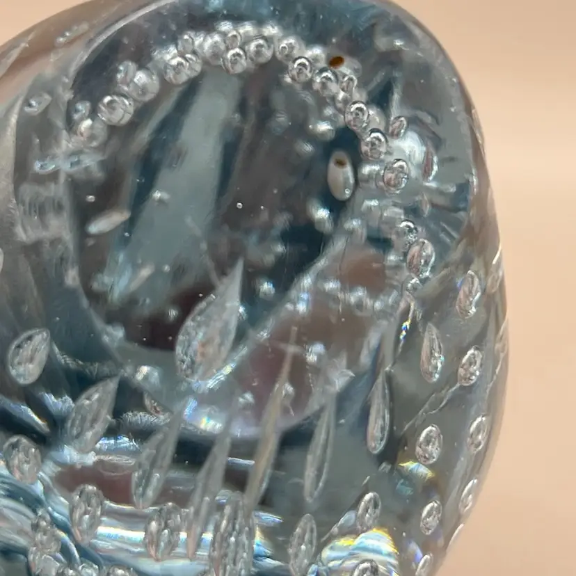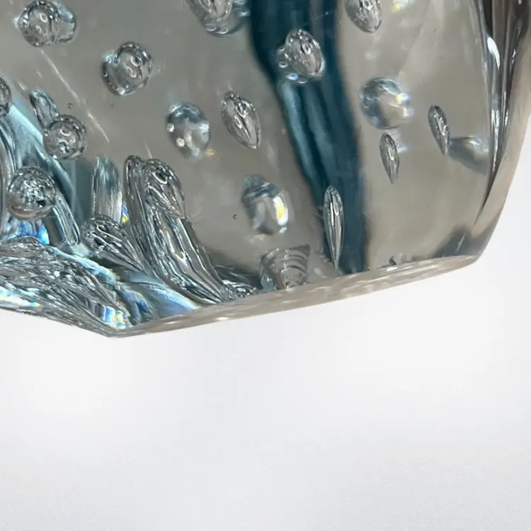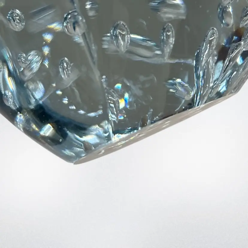 There are some rough spots and a small shallow chip at the bottom edge. One of the rough spots is a flaw in the glass. It’s a small spot of ridges in the glass. Hard to see. 6.25”