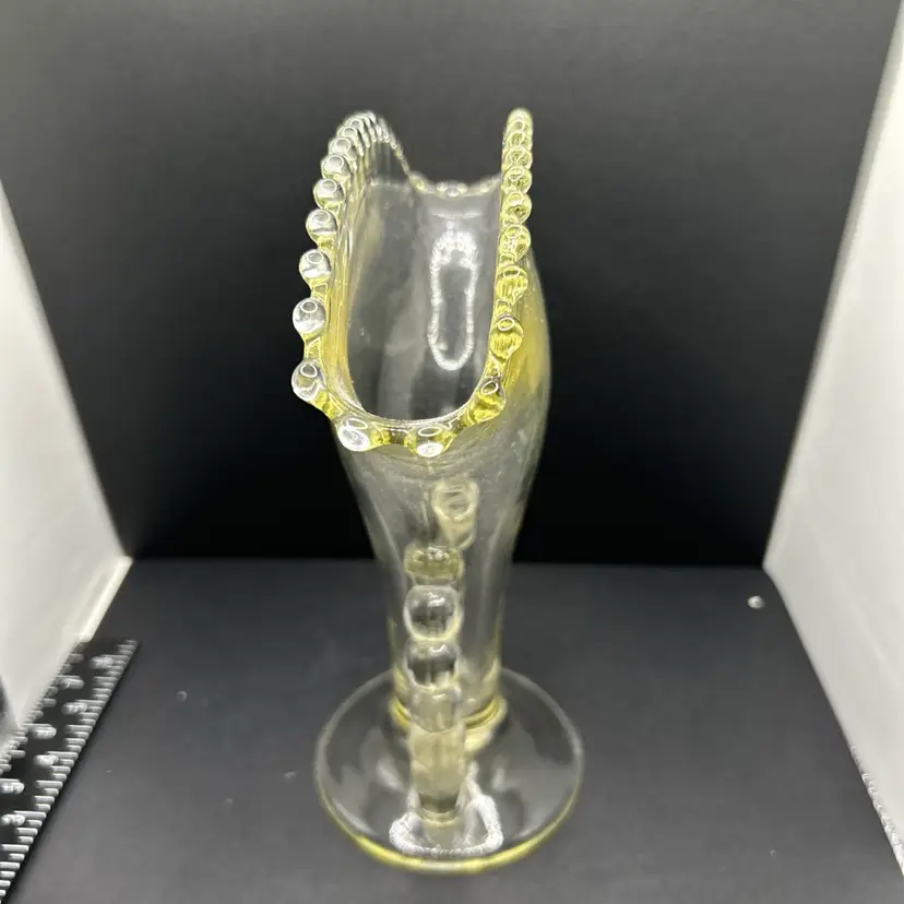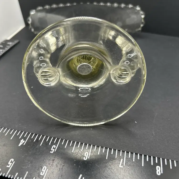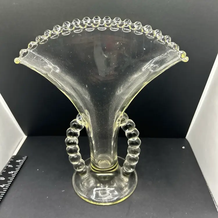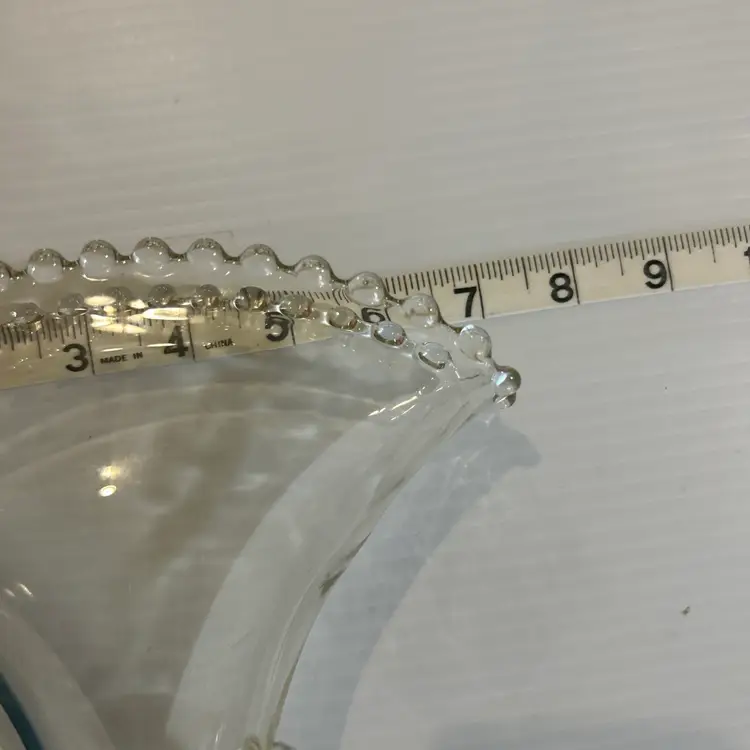 Vintage imperial candlewick fan vase proximately 8 1/2 inches tall by 7 inches wide. Excellent condition no chips no cracks.