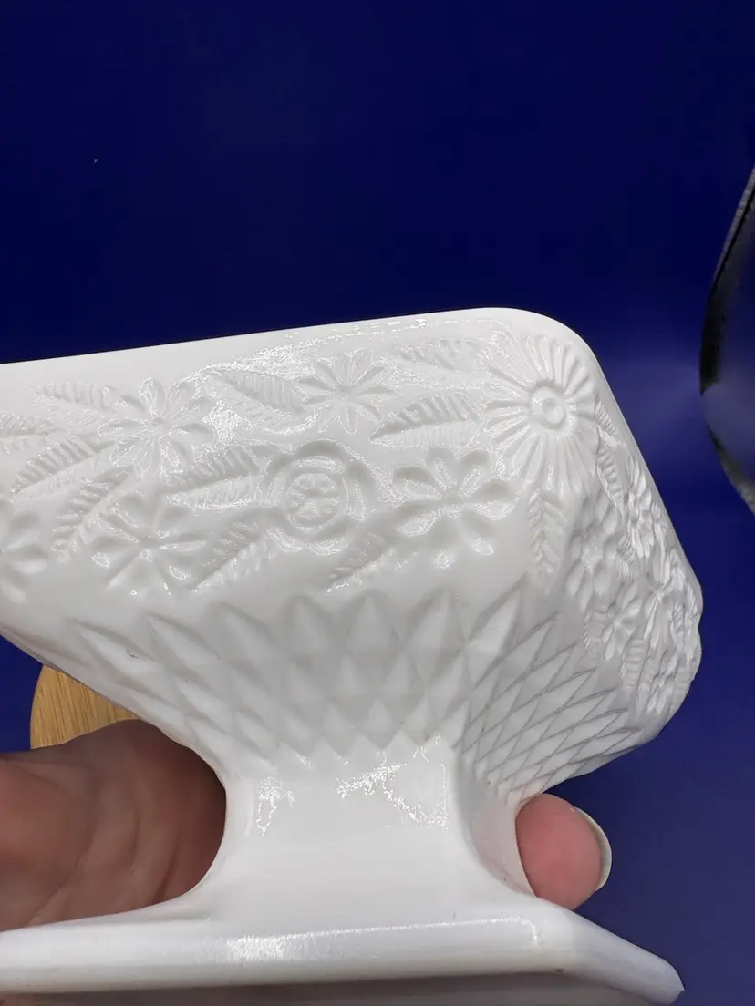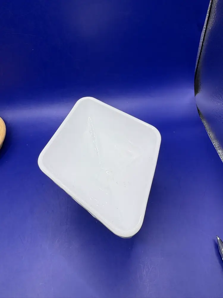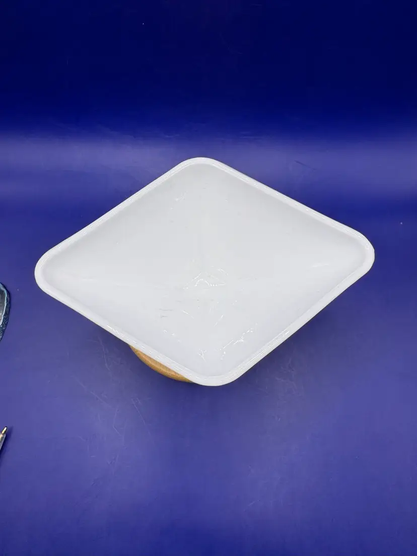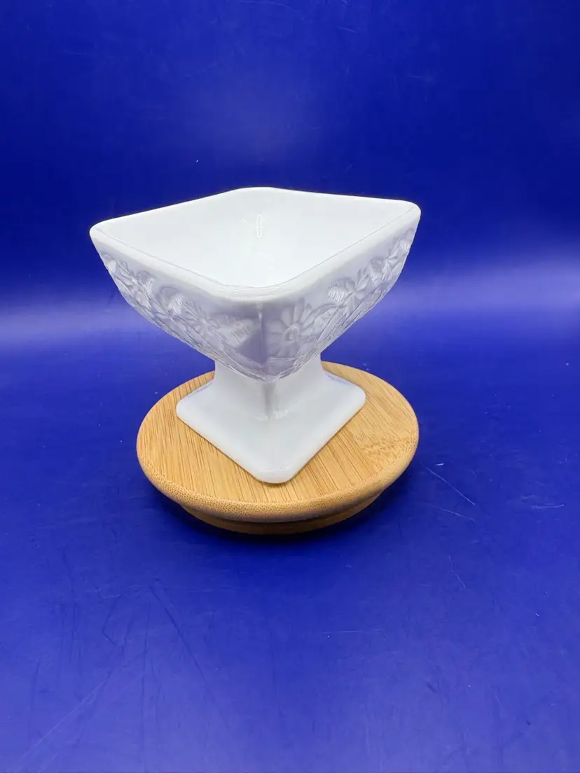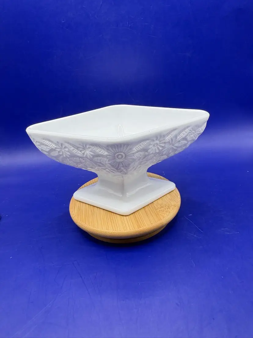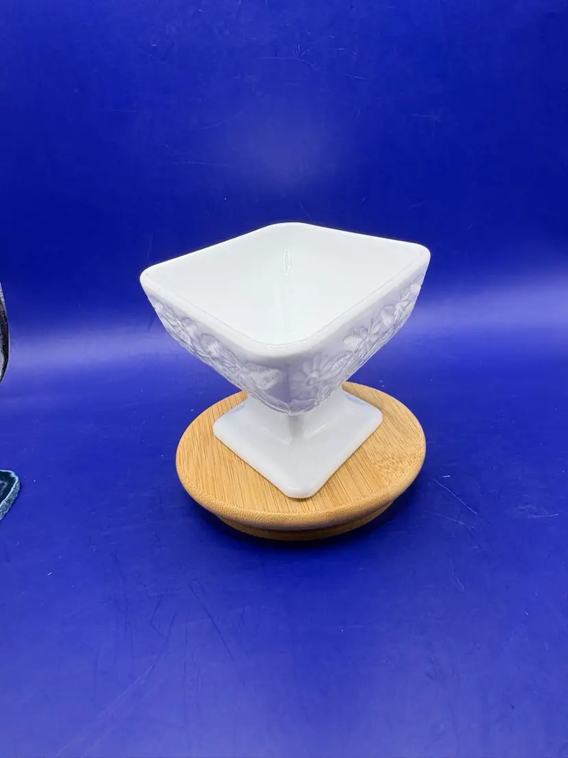 Indiana Glass Milk Glass Pedestal Bowl Diamond Shape Milk Glass Measures 6 1/4 inches by 4 1/2 inches by 3 inches tall No chips or cracks