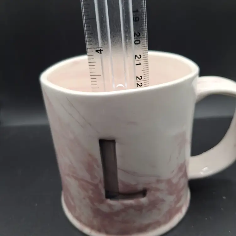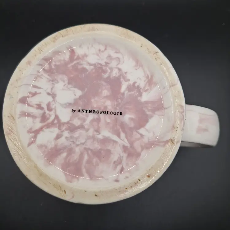 • Unique marble-effect ceramic design • Substantial handle for comfortable grip • Letter "L" decorative element • Anthropologie branded base • Smooth glazed finish