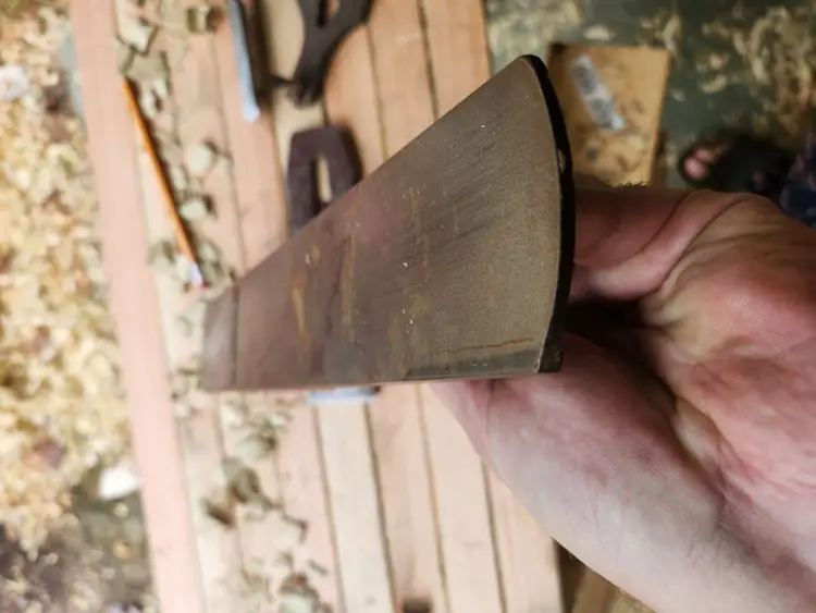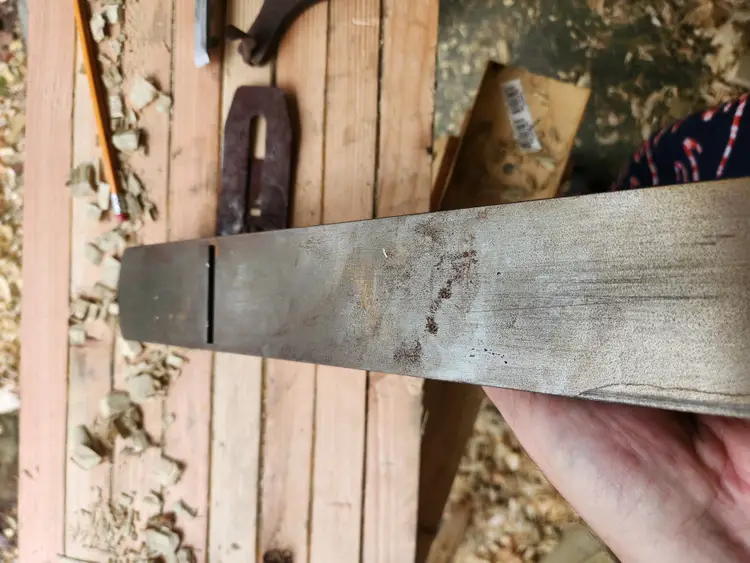 Manufacturer unknown. Will require restoration. Blade is a bit bent but should be fixable. The sole does have one bit towards an end that seems like it is a result of a drop.