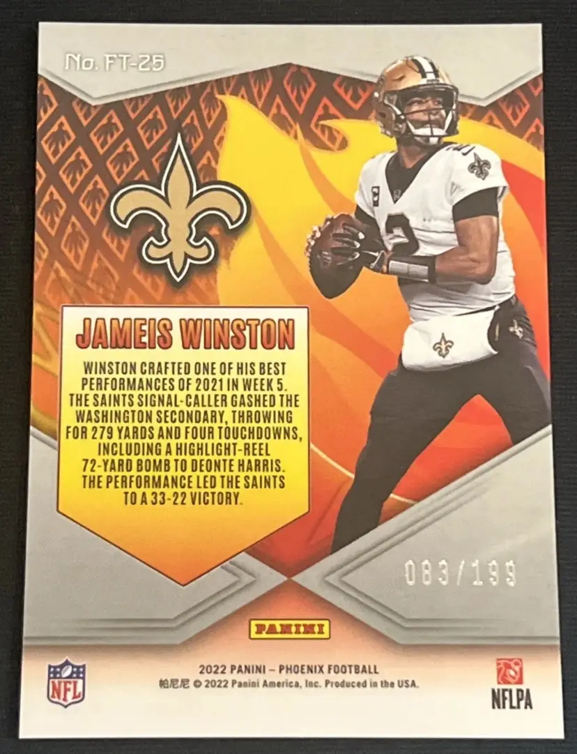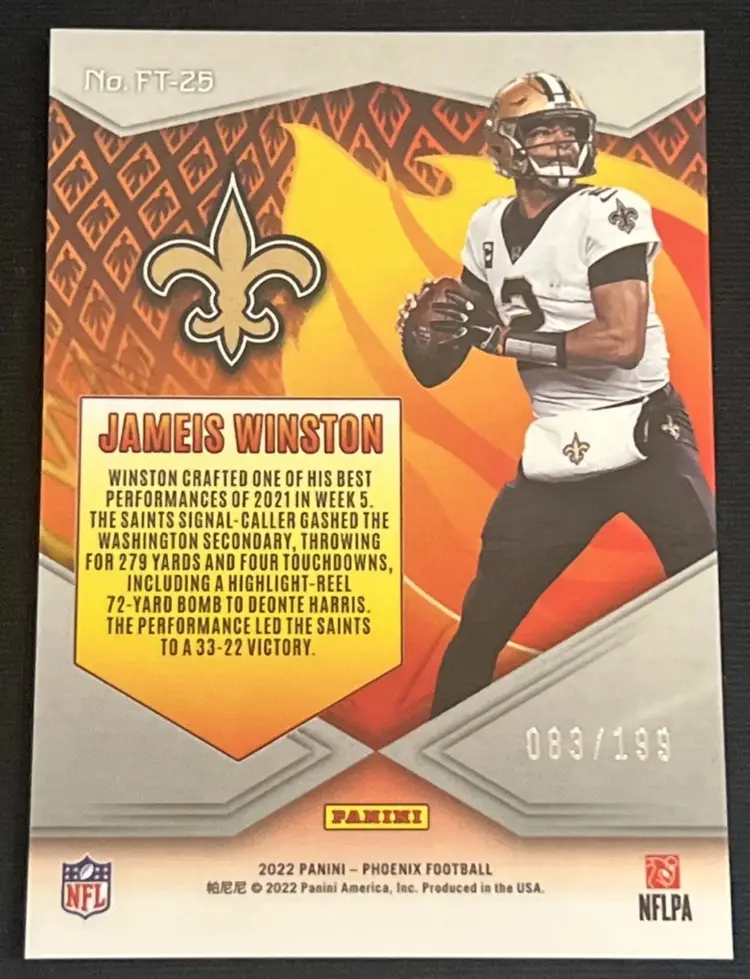 Jameis Winston 2022 Panini Phoenix Flame Throwers Red /199 #FT-25 New Orleans Saints