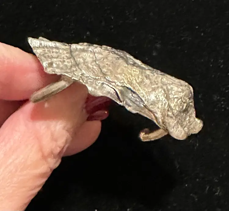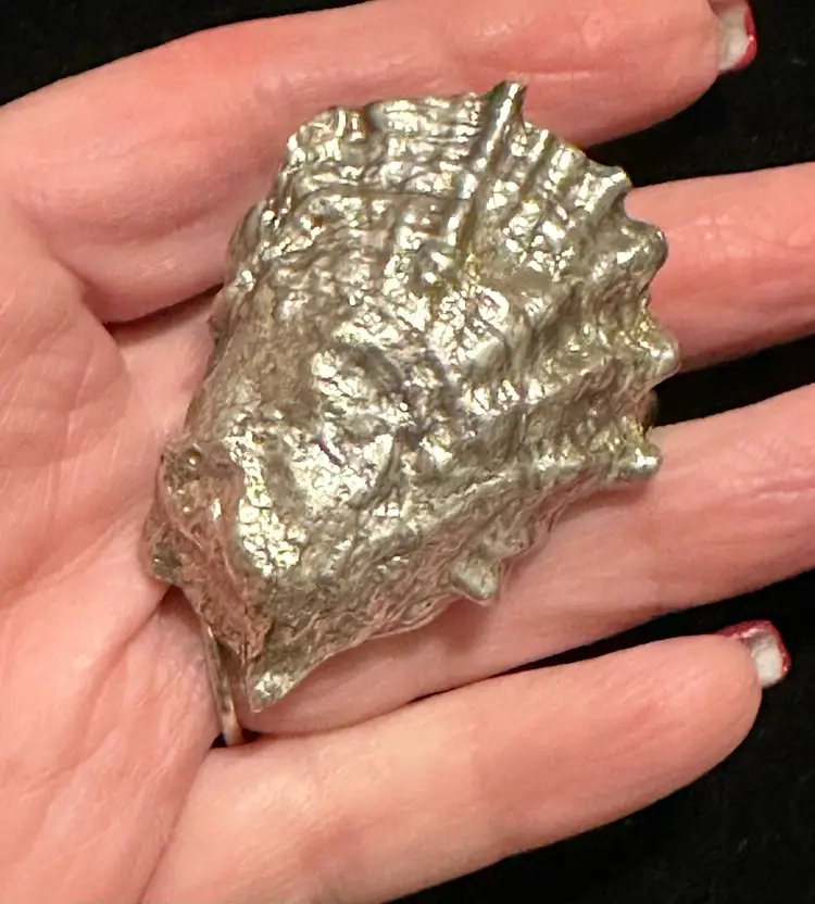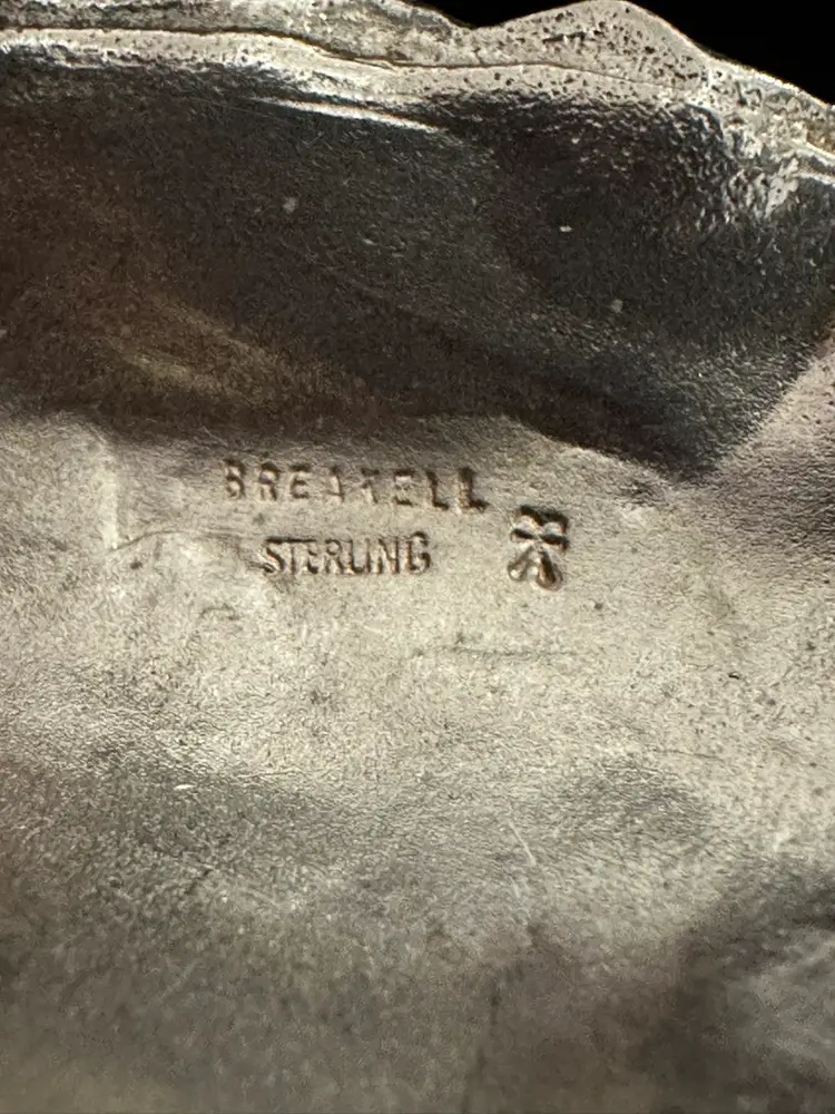 James Breakell is a silversmith from Newport RI. This Figural sterling belt buckle is an oyster shell. It is 2” x 1.5”. It accommodates a 1” wide strap. It is in excellent condition.