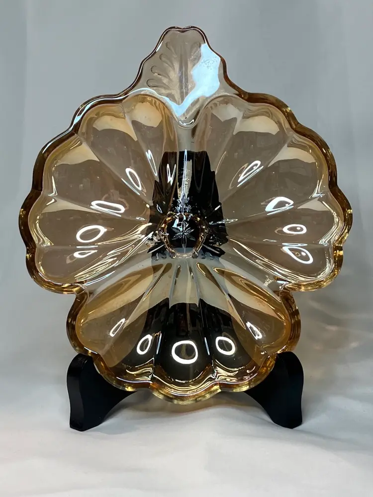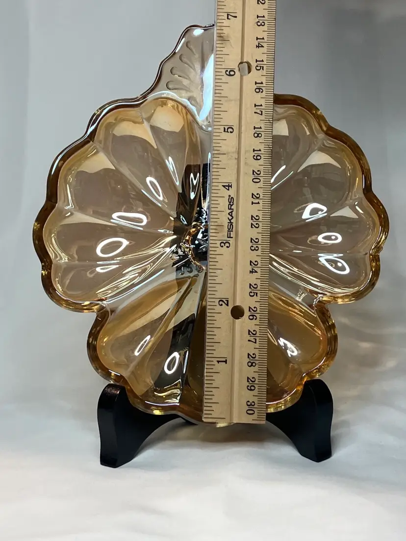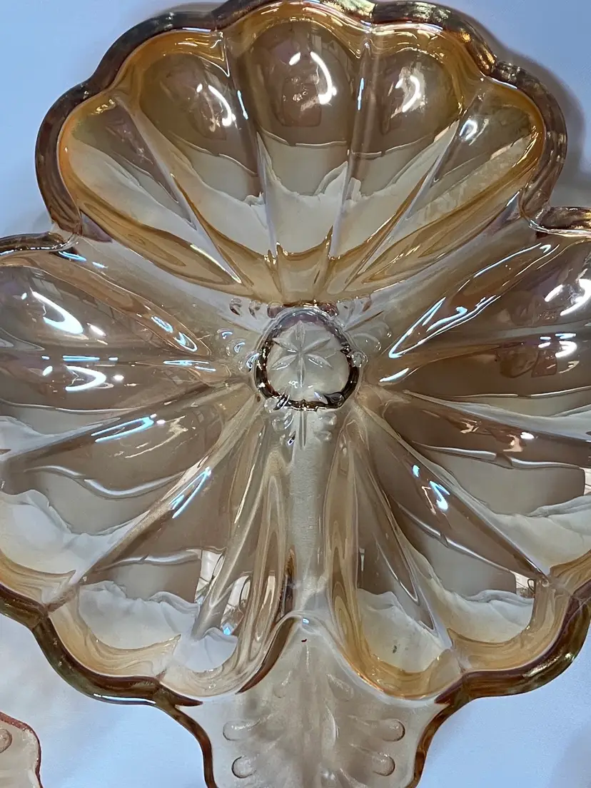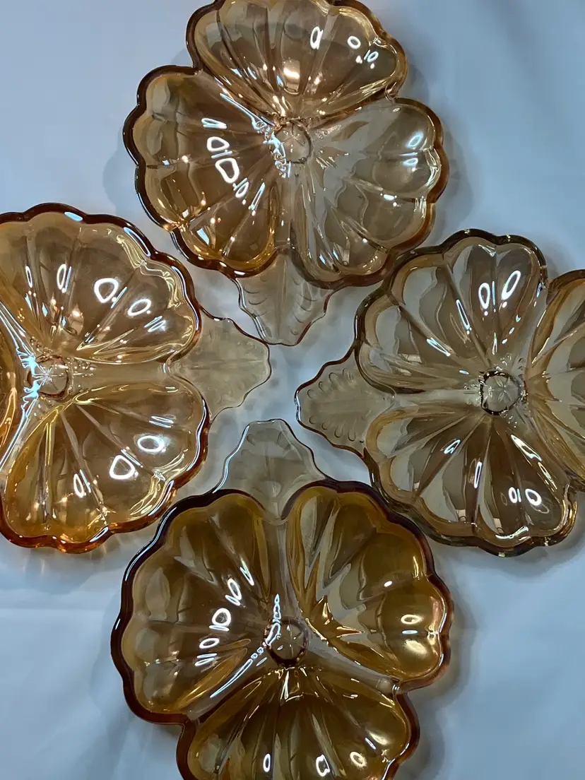 Lot of 4 divided serving dish. Lovely iridescent finish. No crack or chips.
