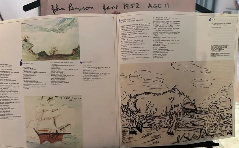 • Outer Sleeve: Features John Lennon’s childhood artwork (football scene, June 1952, age 11).