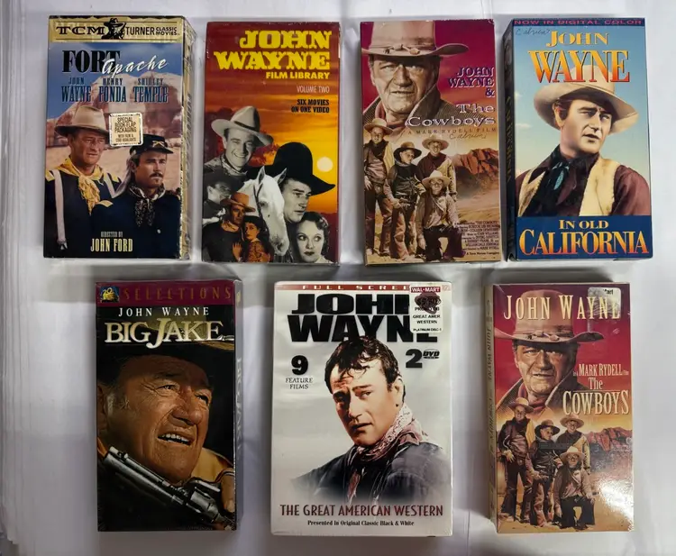 Selection of John Wayne movies 4 are still in protected wrap and other 3 are slightly used.