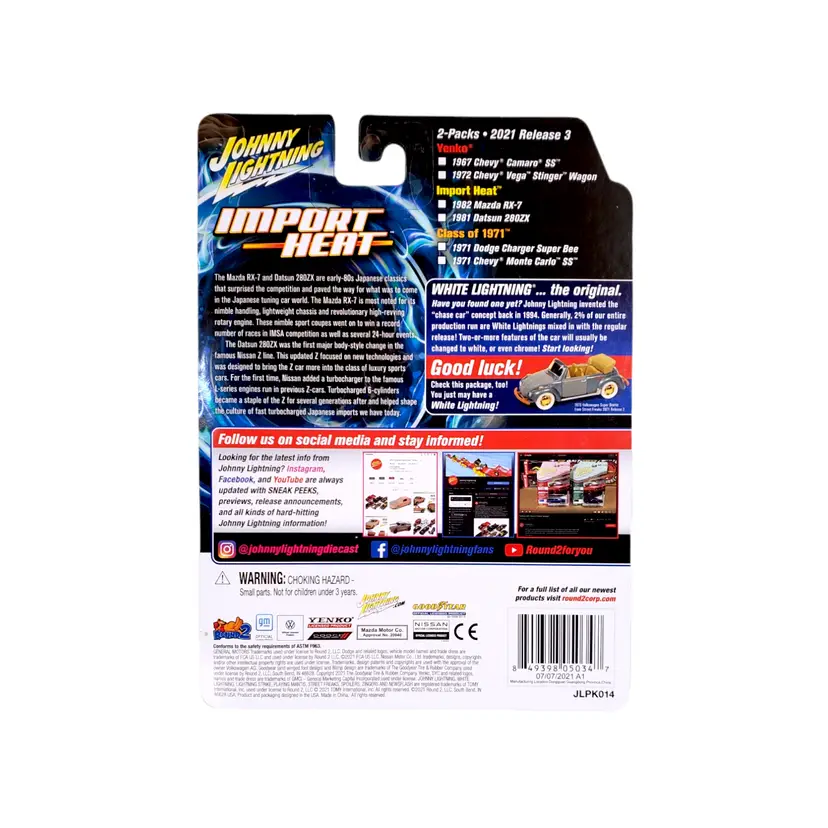 Johnny Lightning Import Heat Mazda RX-7 &, Datsun 280Z Blue/Red ,2-Pack. Package is rated in EXCELLENT condition