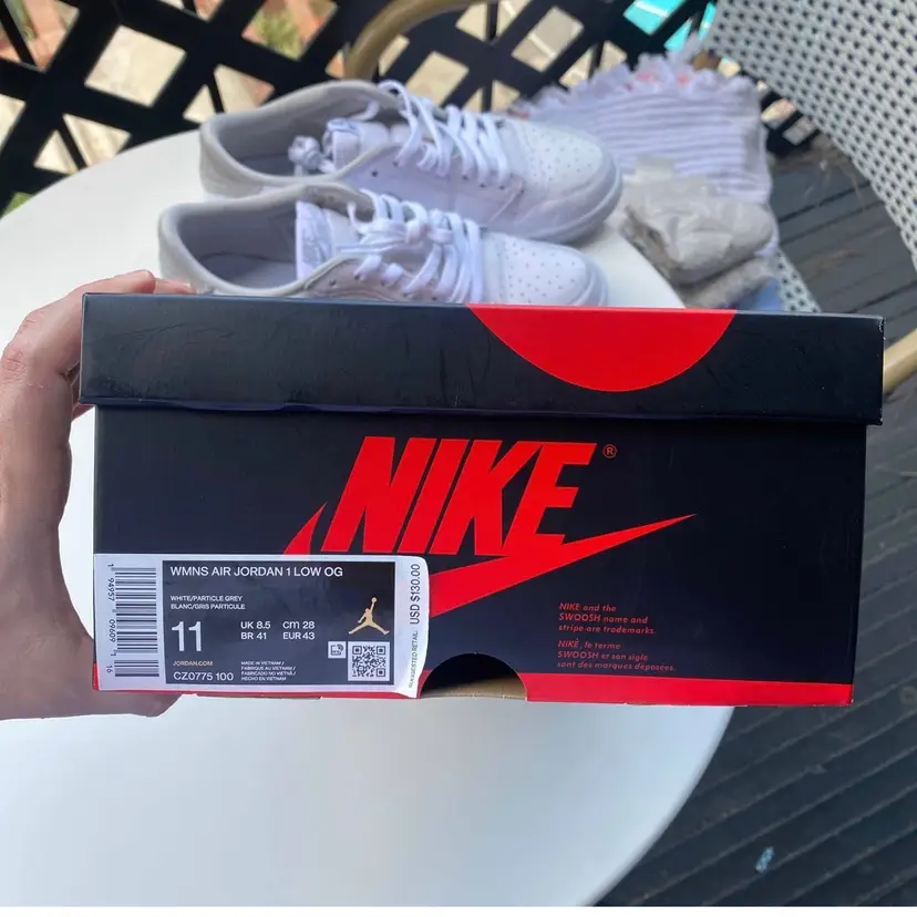 Jordan 1 low OG Neutral Grey 2021 Size 11W/9.5Mens Worn , has light jean stains on heel Missing one shoe tree , does have extra grey laces