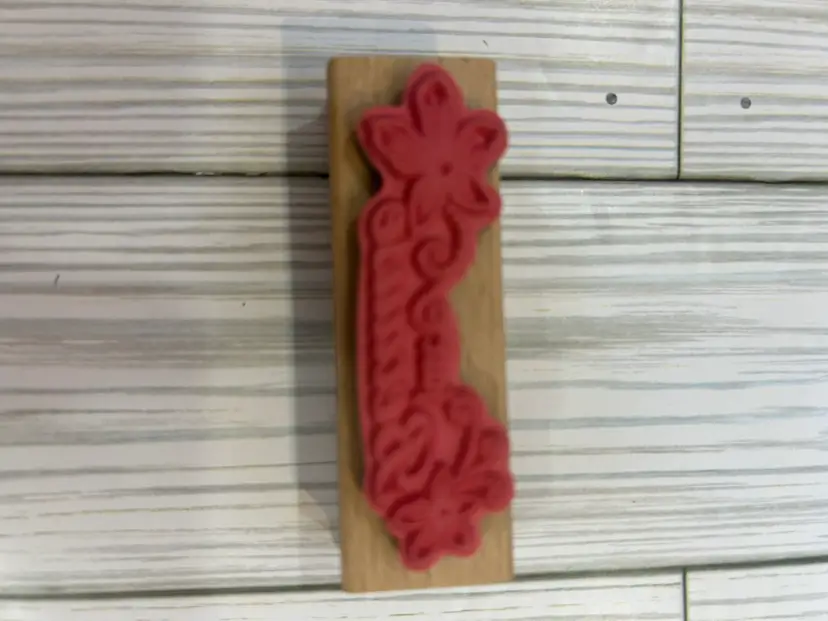 This precious stamp has never been used. Great for that little touch on your gift projects! It measures 1x3”.