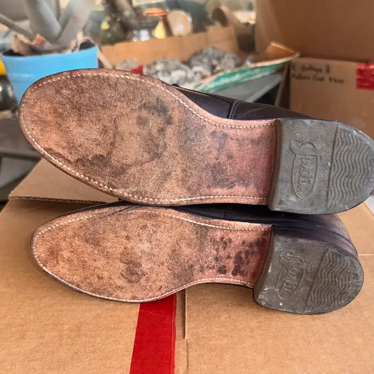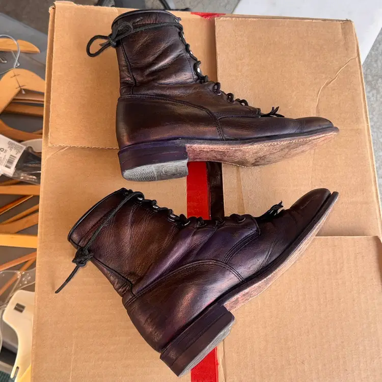 Fantastic pair of boots these have been died and we have variations of the dye on the boots. Please see picture for sizing and condition. No refunds no returns. No flaws, no rips no tears.