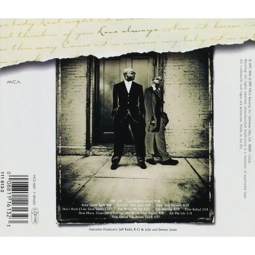 Dive into the soulful harmonies of K-Ci & JoJo with their hit album 'Love Always'. This classic R&B CD features the timeless tracks that defined a generation, including the chart-topping ballad 'All My Life'. Perfect for fans of smooth melodies and heartfelt lyrics, this album is a must-have for any R&B enthusiast's collection.