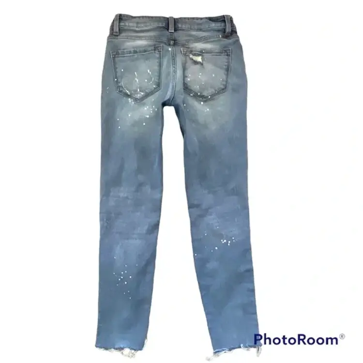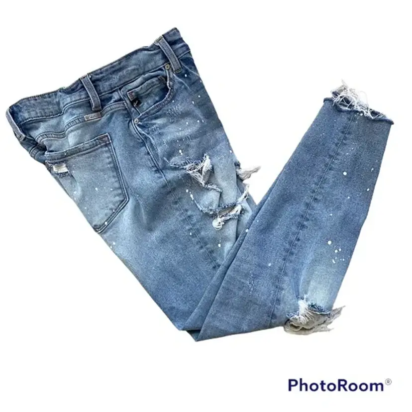 Estilo destroyed cropped raw hem jeans from Kancan. Button and Zip close. Size 24. Please check measurements shown in pics before purchasing.
