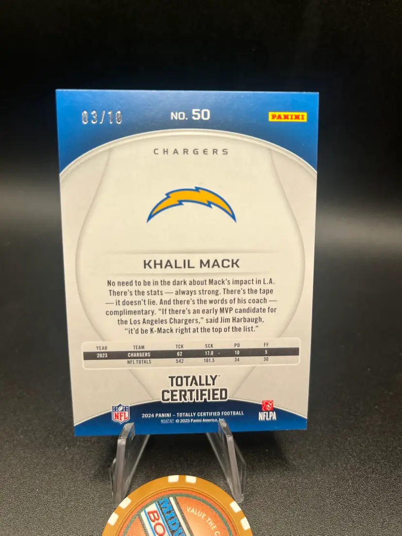 2024 Totally Certified Khalil Mack #3/10 gold parallel. Los Angeles Chargers.