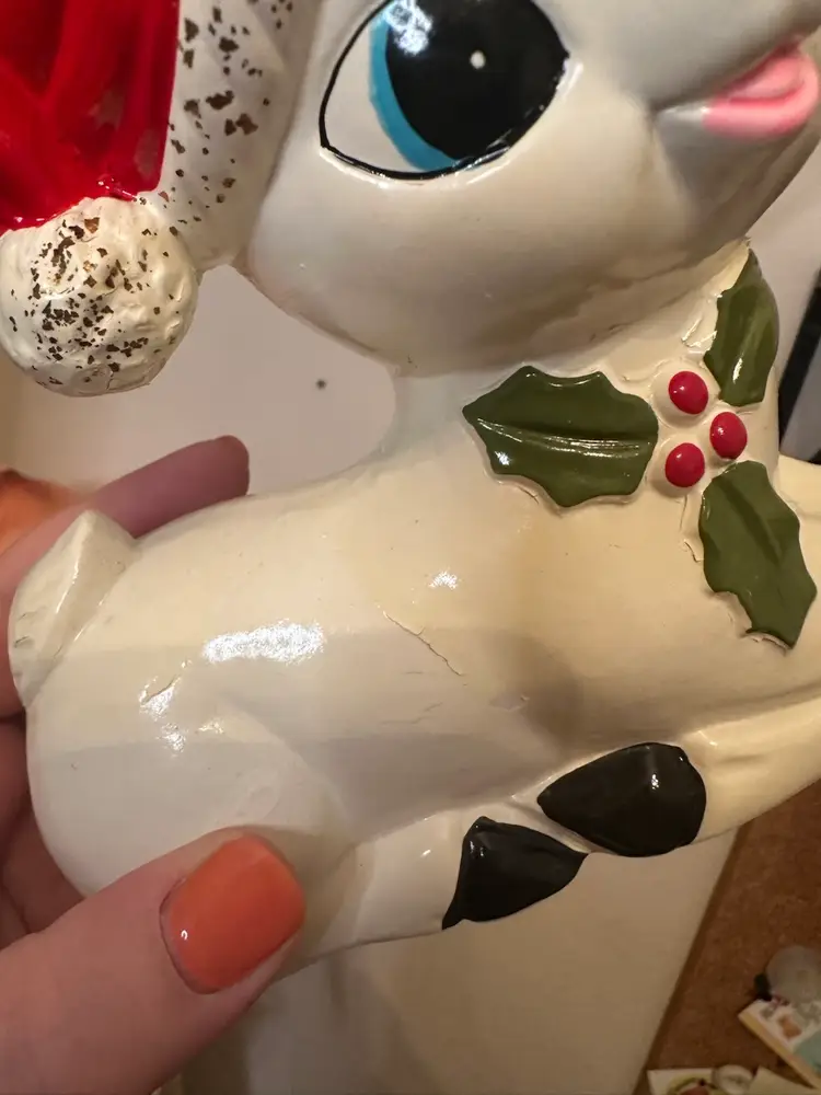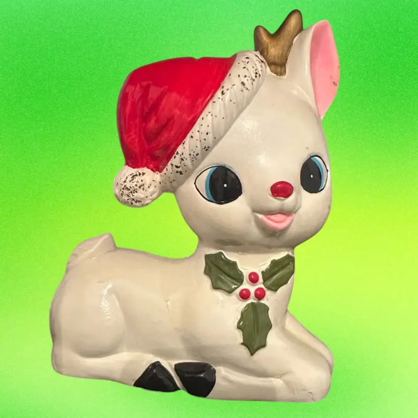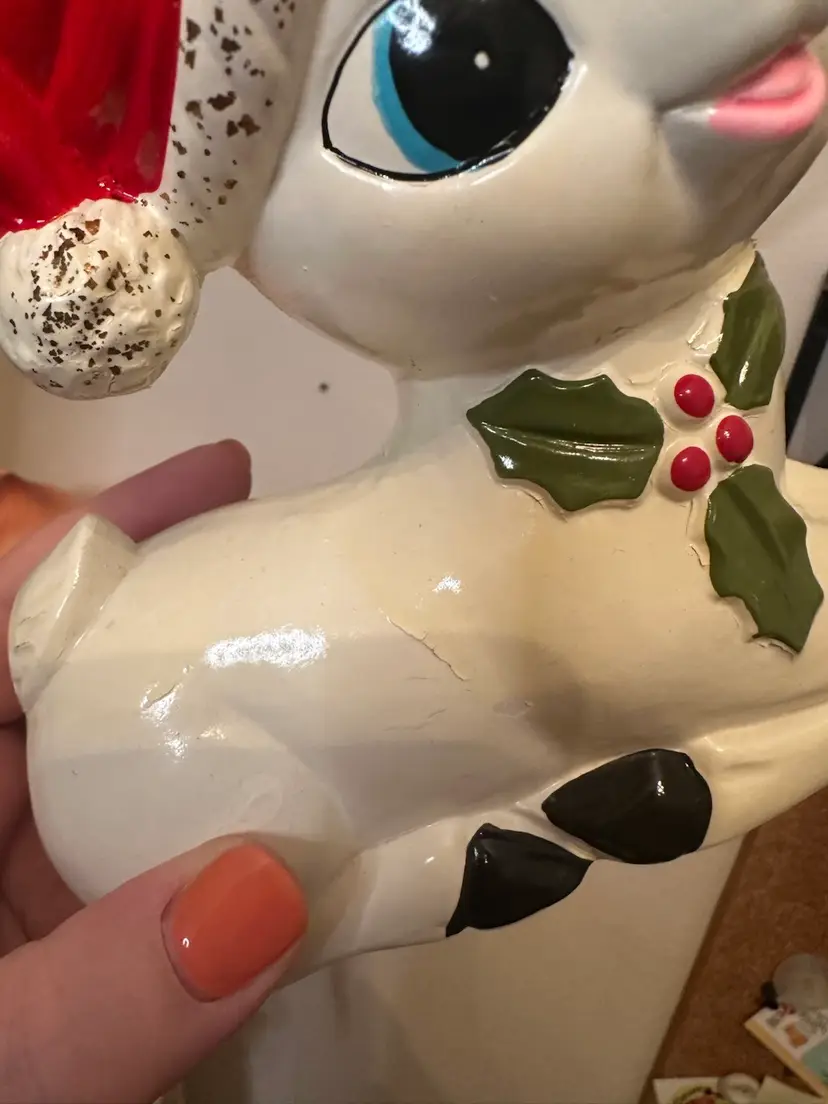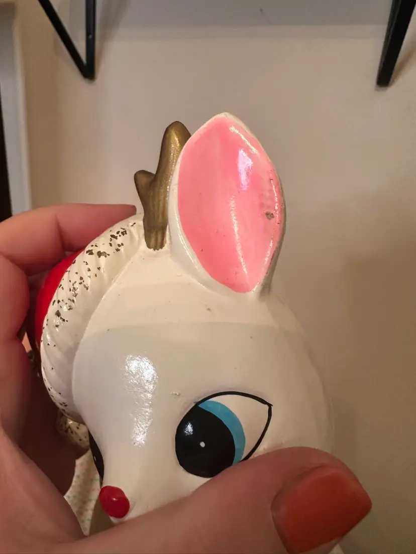 The cutest little figurine. You don’t see this one every day! Made by KN Japan. Has some small areas of paint loss from age, see all photos. She’s very cute and has loads of life. Is a nice light paper mache/plaster style material. Thanks for looking! See my Other vintage listings!