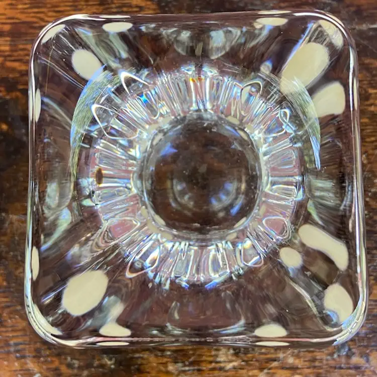 Approx 3.25”w x 3”h. Pre-used condition. No chips or cracks. One small scuff on rim of top corner. 4 felt pads on bottom. See images as part of description.