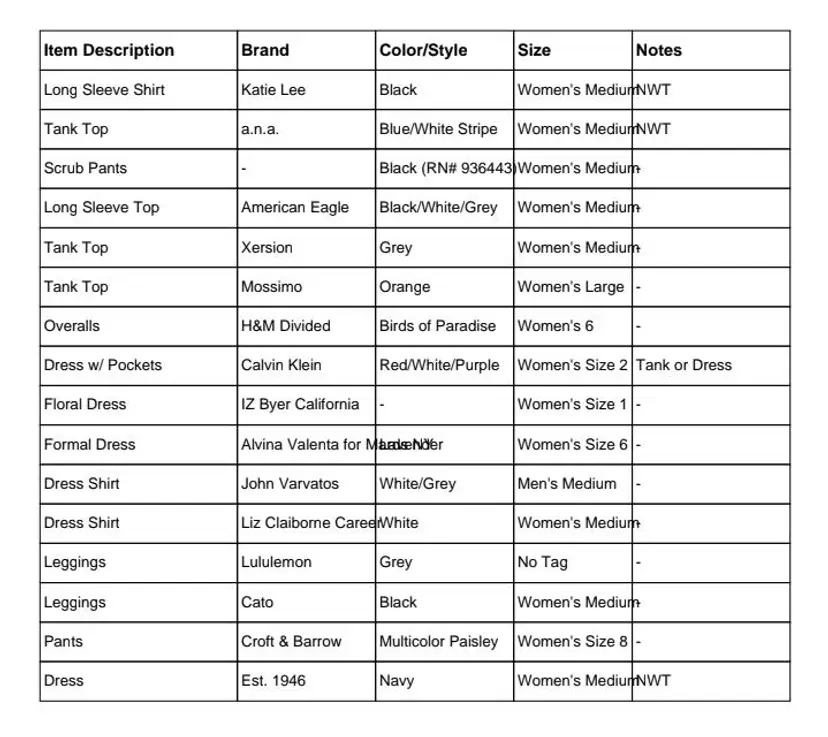 16 piece Women's Clothing Bundle w Manifest. Mostly big name brands varying in style and mainly smaller sizes.