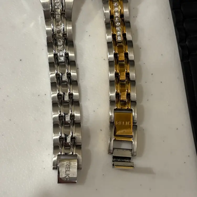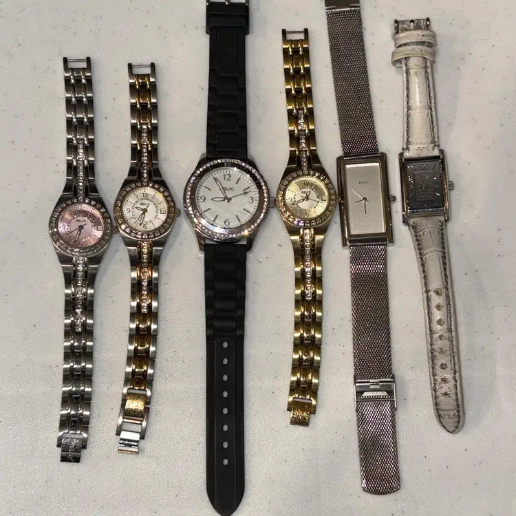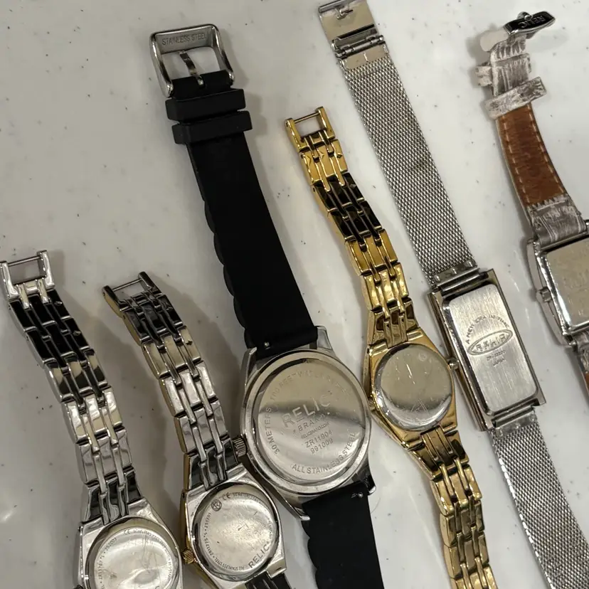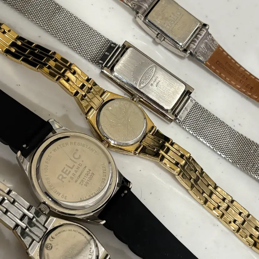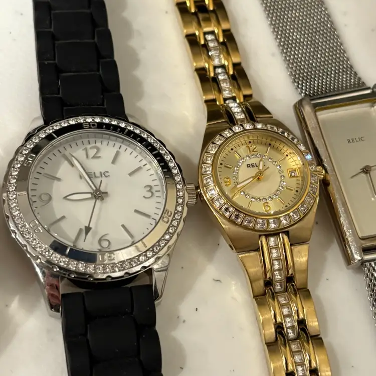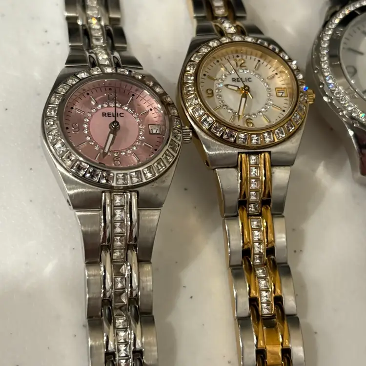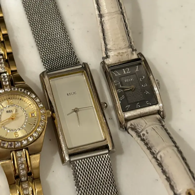 Most of these are variants of the relic “queens court” watch with an avg sold price of $26 on eBay.