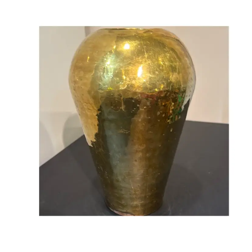 Beautiful hammered brass vase. Can be polished or left as is. Measures 10 inches tall.