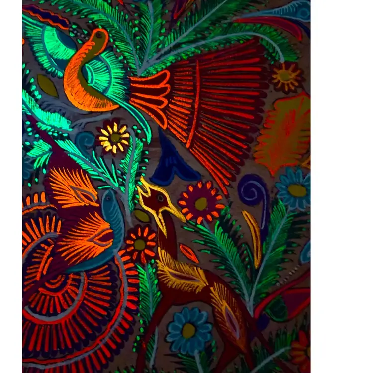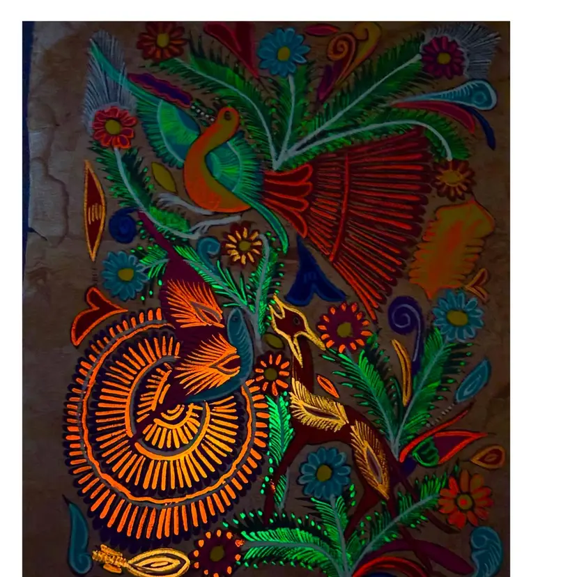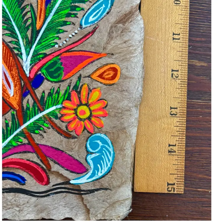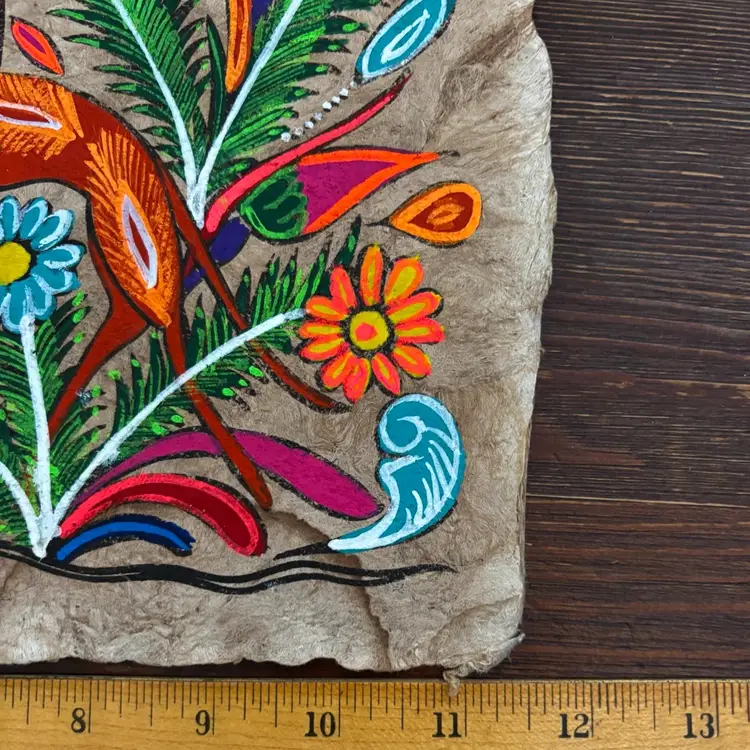 Brought straight from Mexico 5 days ago! Amate bark Mexico folk art hand painting Amate paper is handmade from the bark of trees in Mexico like the mulberry or fig! This type of bark paper has been made in Mexico for centuries and are usually created by indigenous Nahua and Otomi artisans from the states of Guerrero and Puebla, Mexico. These paintings are characterized by their intricate details and vibrant colors which make them great collectibles and displayed wall decor!
