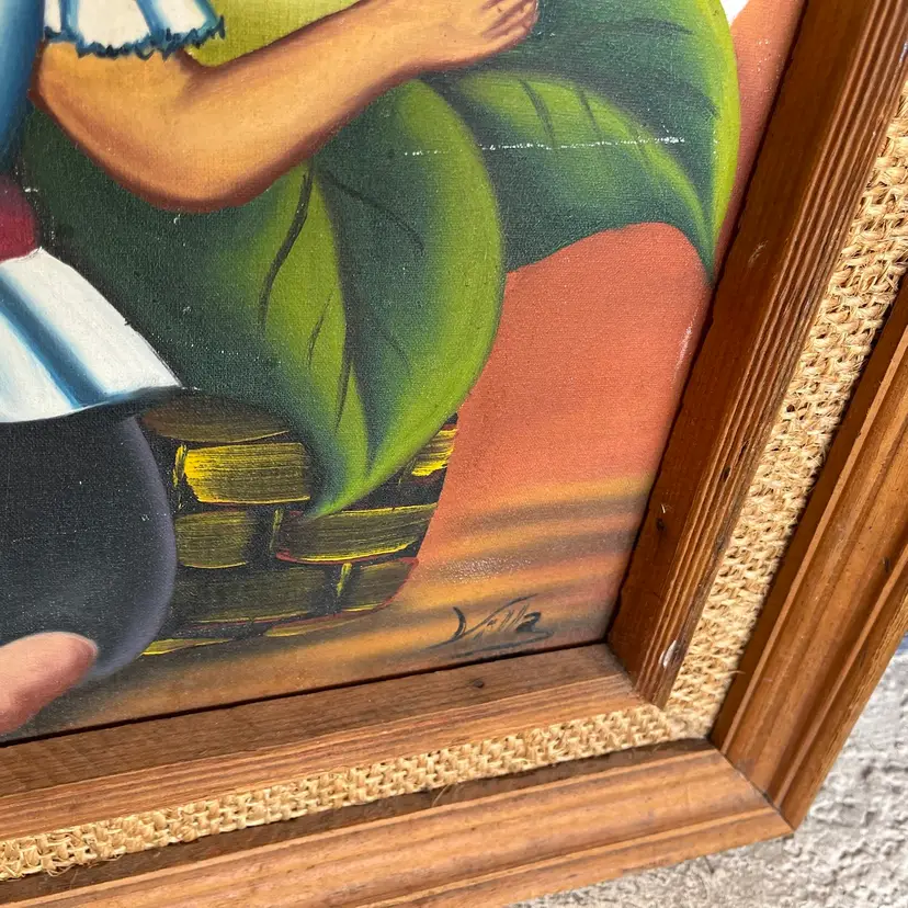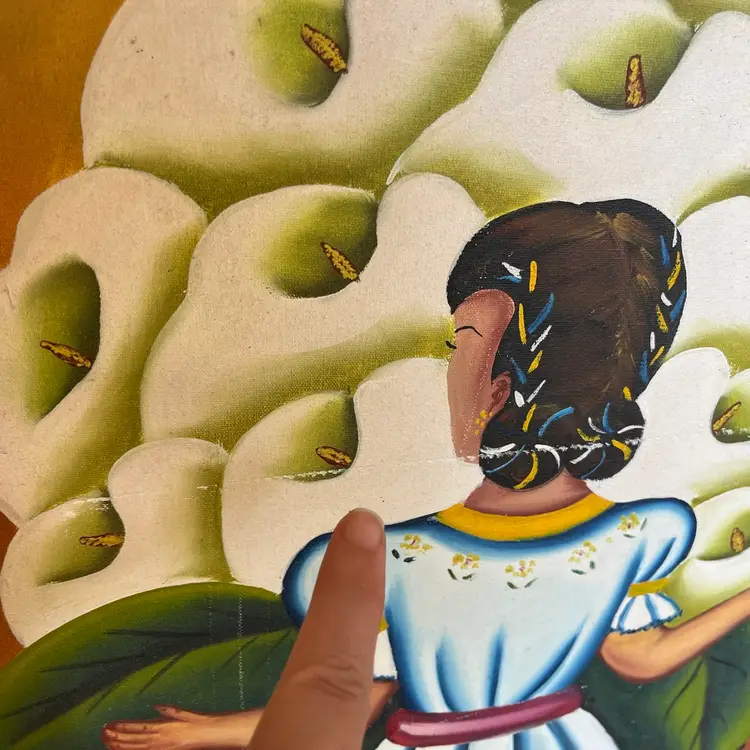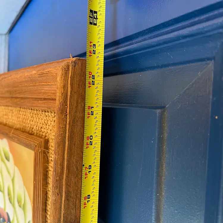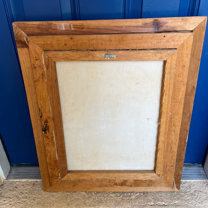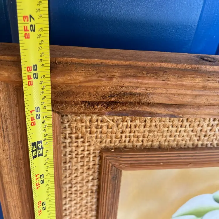 This is a beautiful piece, there is some wear to the paint which I photoed. I don’t know what medium was used but it is original not a print. It is signed and the frame is STUNNING. The florals and colors are just amazing. 22 3/4”x 26 1/4”