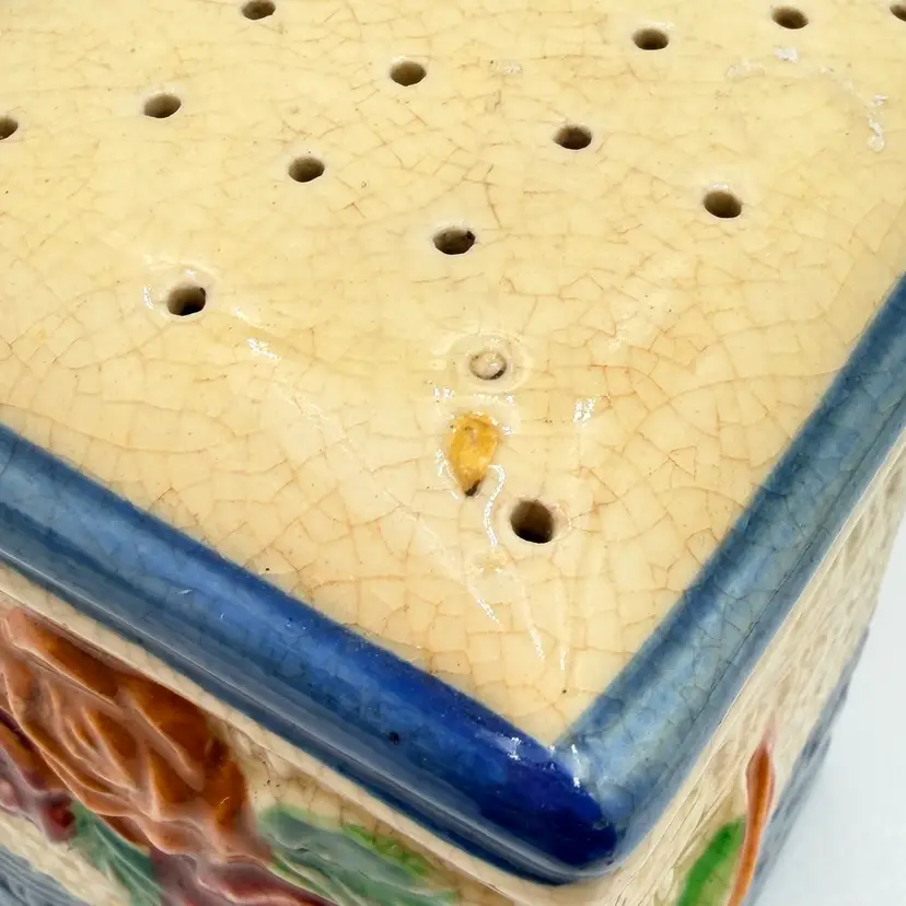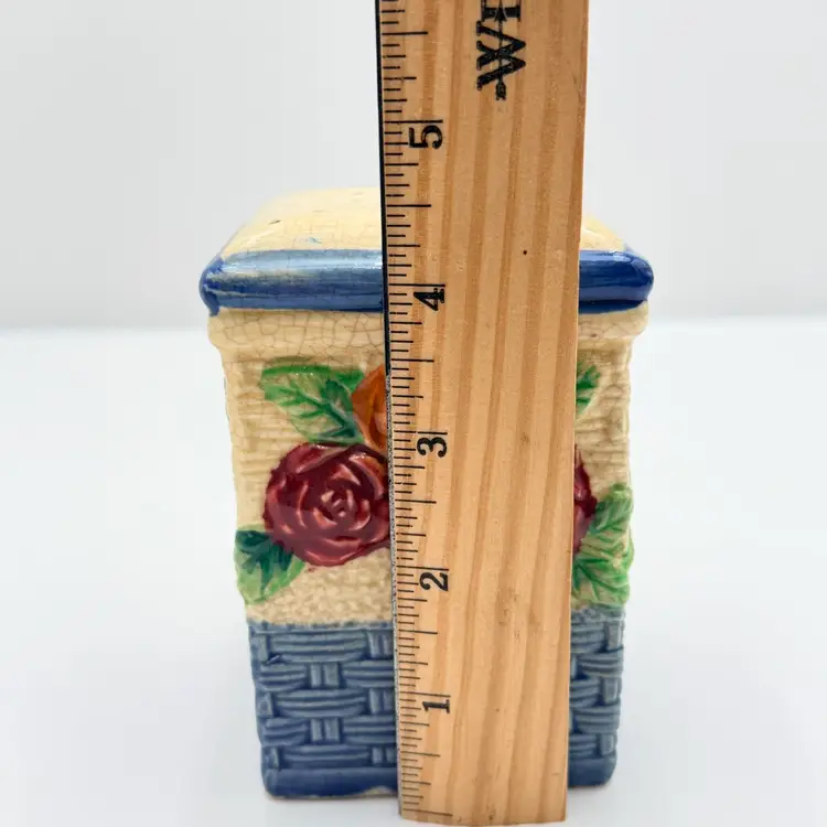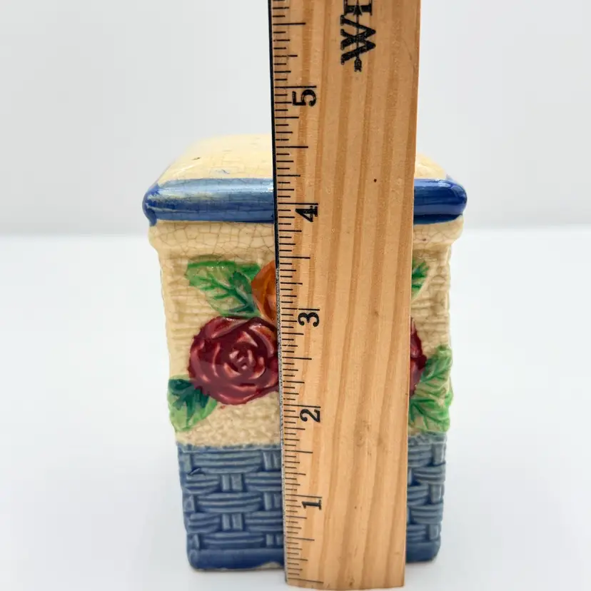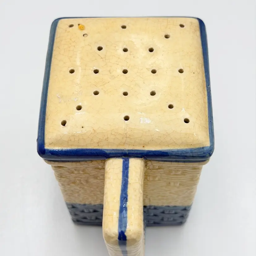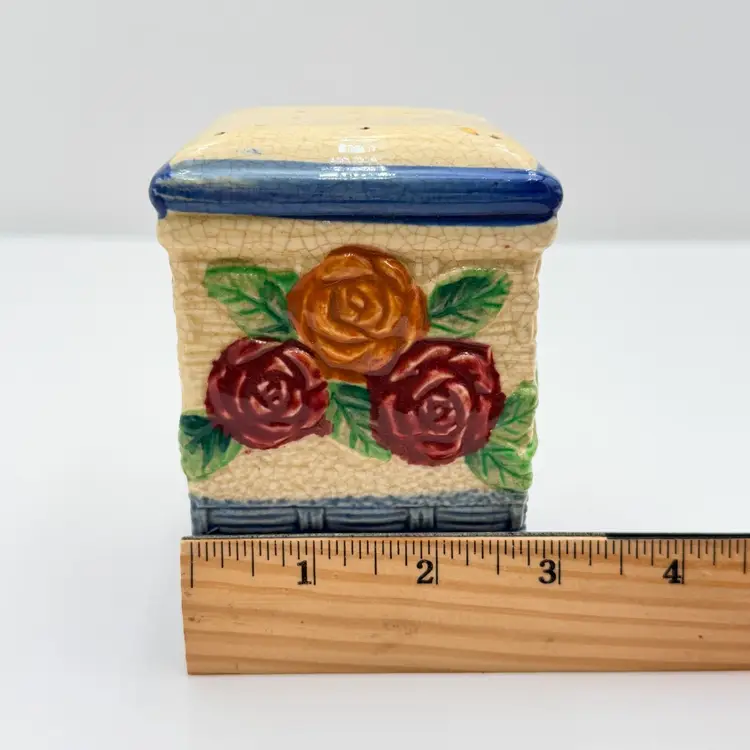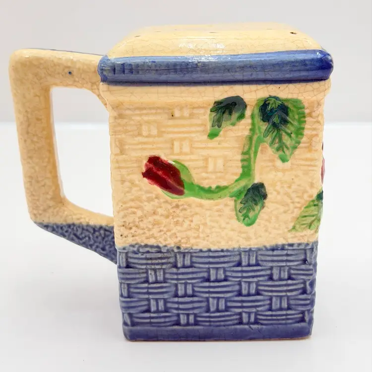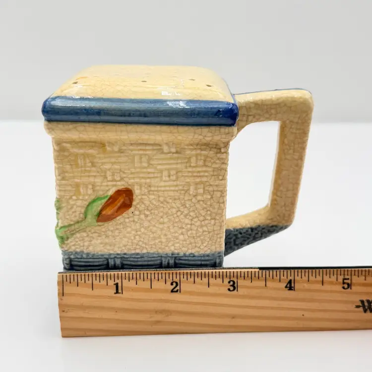 As shown 4.5 inches tall by 4 inches wide including the handle No chips or cracks but some crazing