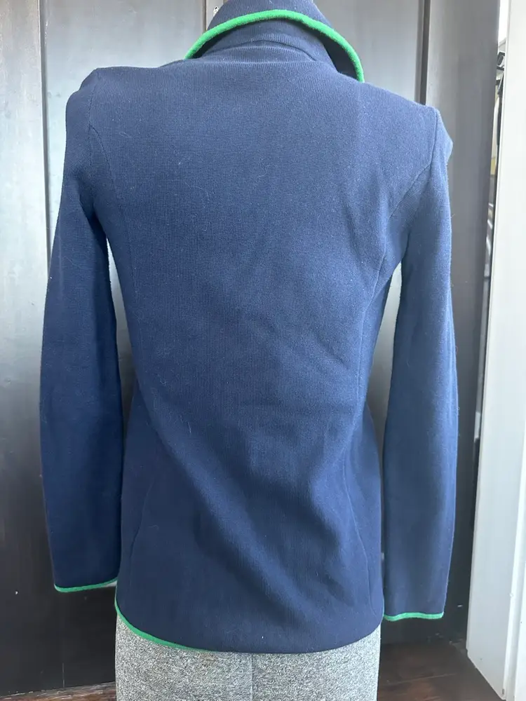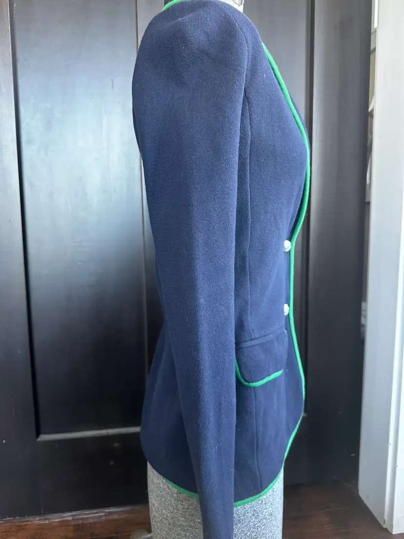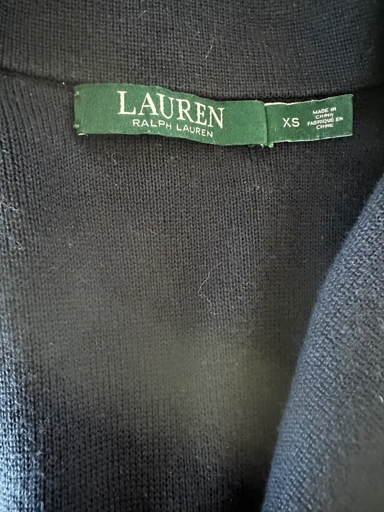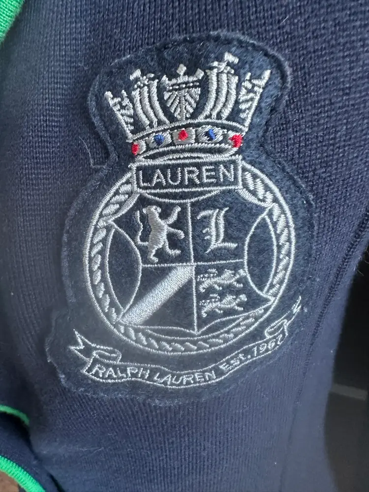 The Lauren Ralph Lauren Navy Knit Embroidered Blazer Jacket in size XS is a stylish and versatile outerwear piece perfect for various occasions. Made of cotton with a knit fabric type, this short jacket features a button closure, long sleeves, and embroidered accents. The classic navy blue color with a badge crest design adds a touch of sophistication to this retro-inspired blazer, making it a timeless addition to any wardrobe. Perfect for travel, parties, casual outings, or formal events, this blazer jacket exudes a preppy and designer appeal with a hint of old money charm. SKU:RH60WO2