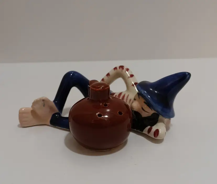 Hillbilly Moonshiner Lazy Daze Salt & Pepper Shaker Set! Had A Little Too Much Moonshine! No chips or cracks! 4.5" Long x 2" Tall