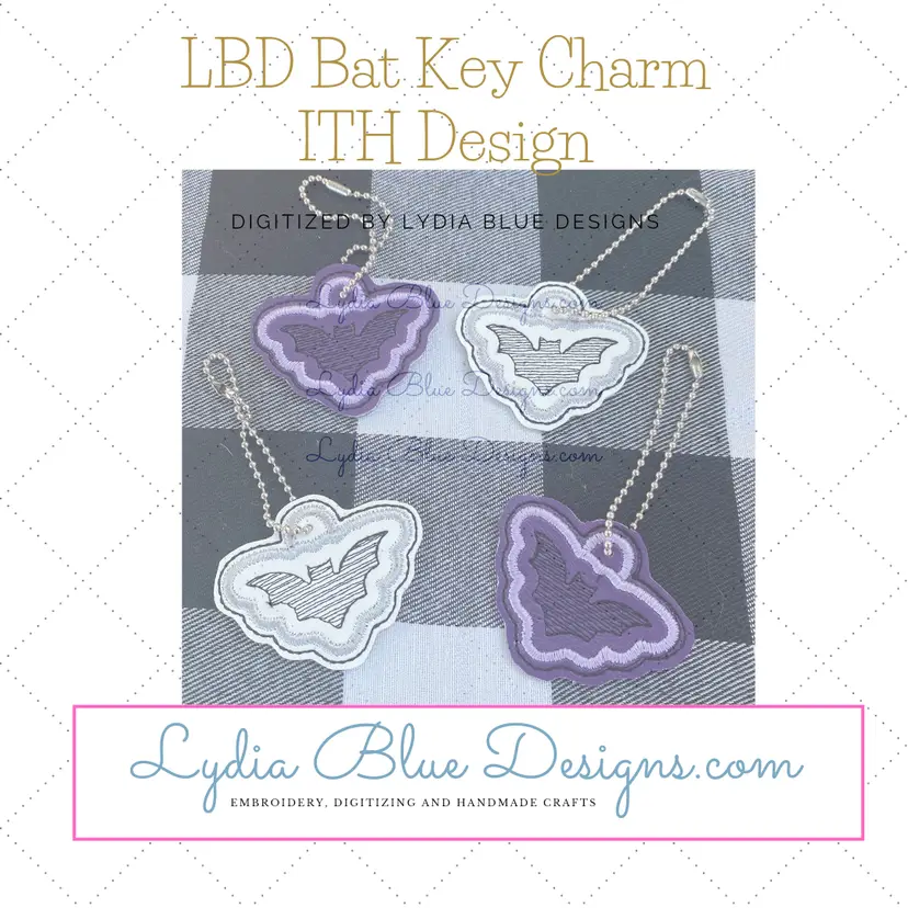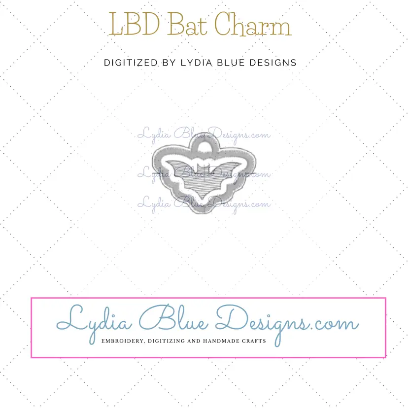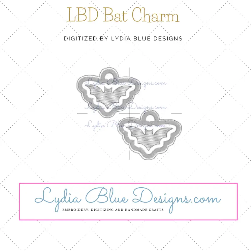 Embroidery file attributes: In The Hoop embroidery file featuring : a bat fill stitich with a bean stitch boarder and a satin stitch boarder Charm.