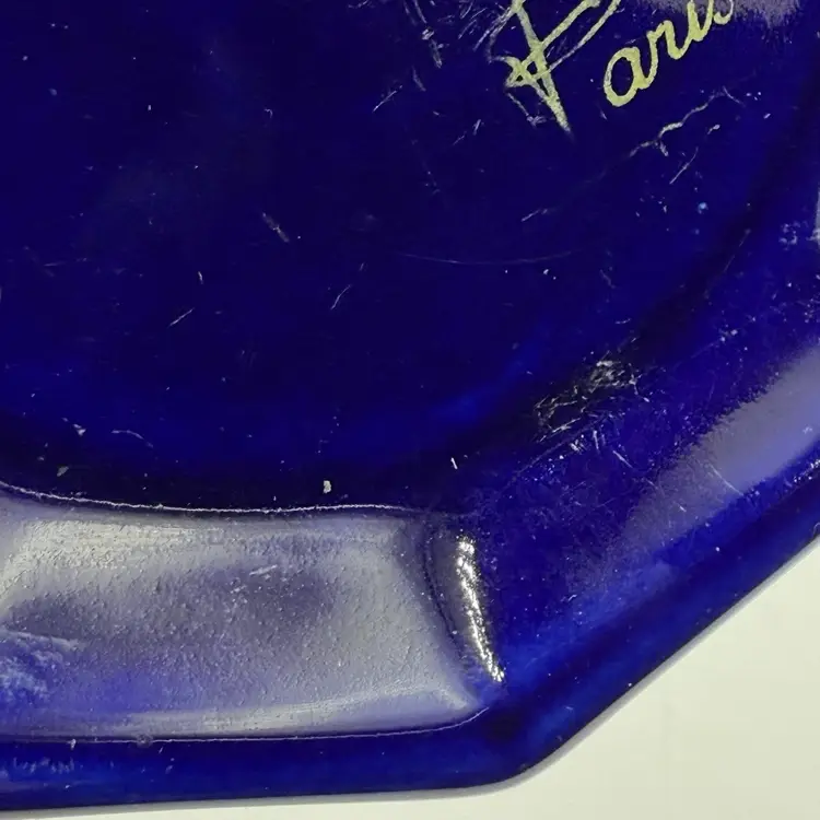 In good condition. Does not have any chips or cracks. There are scratches on the inside bottom of the dish. The writing lettering has some wear.