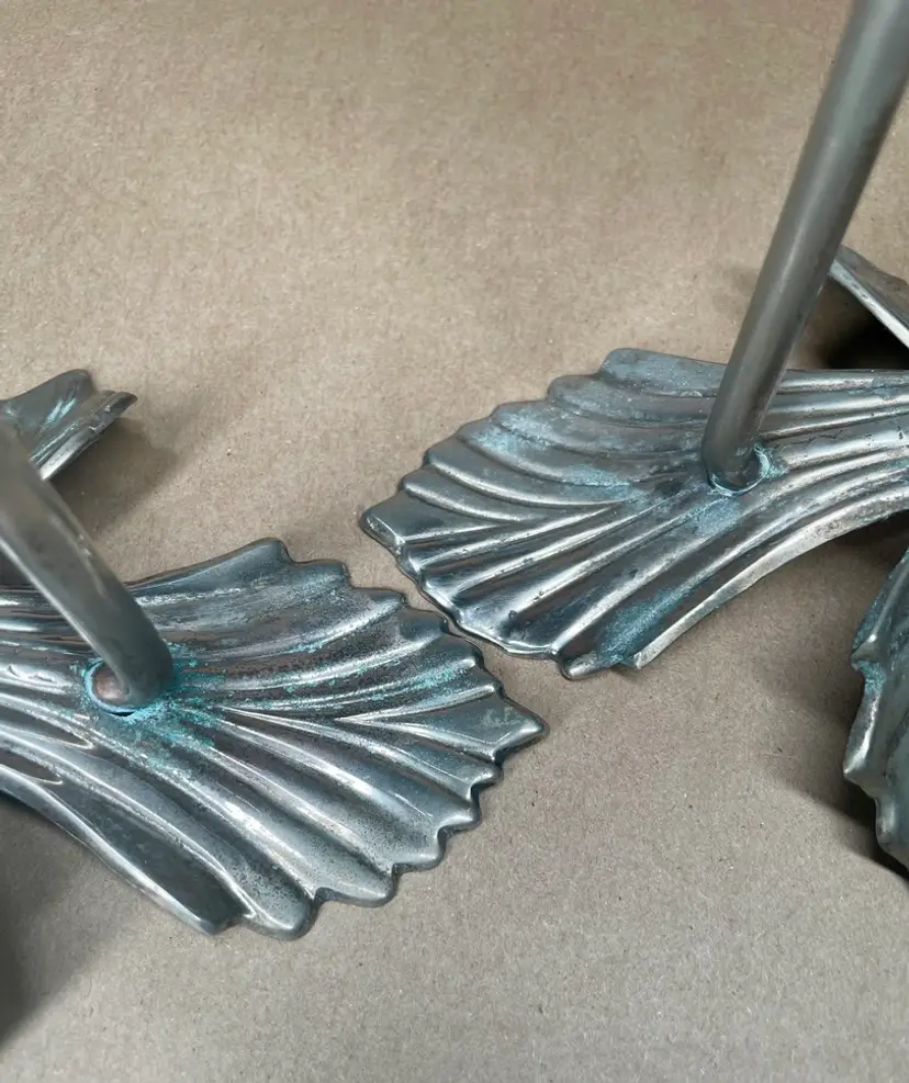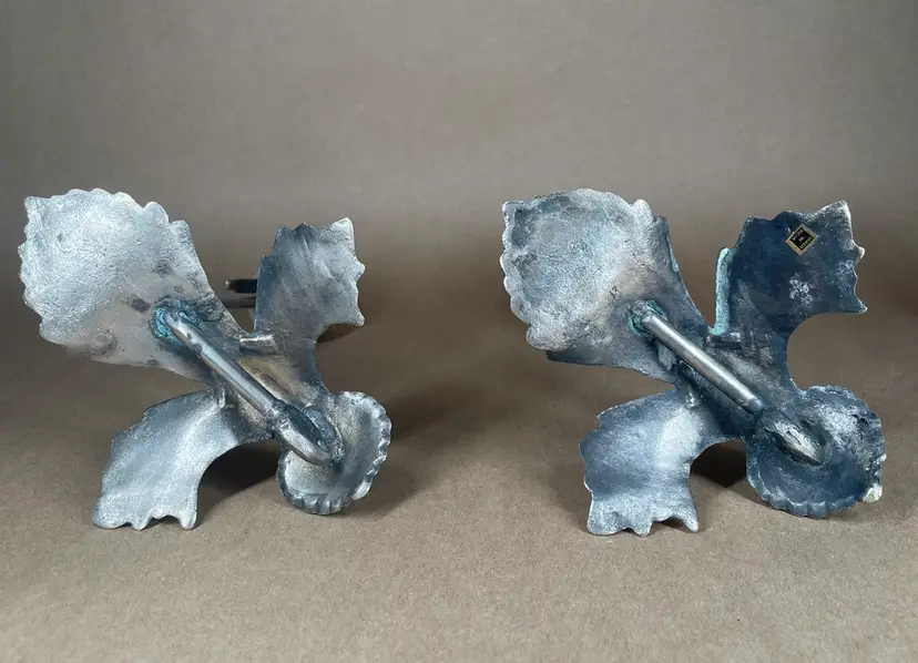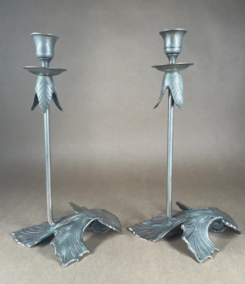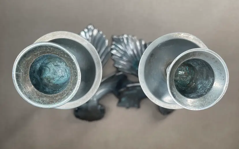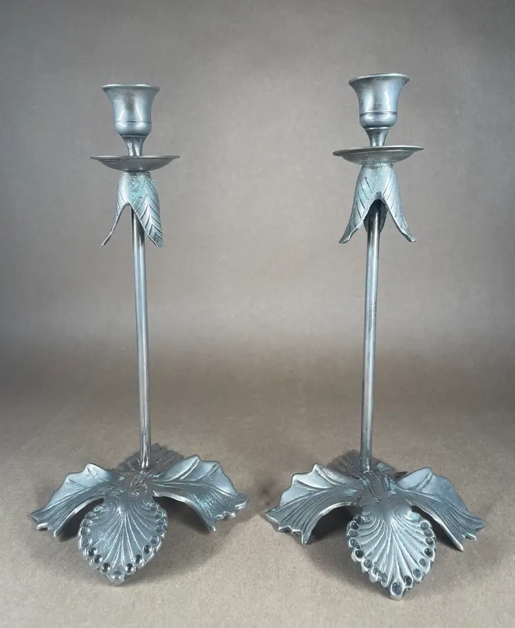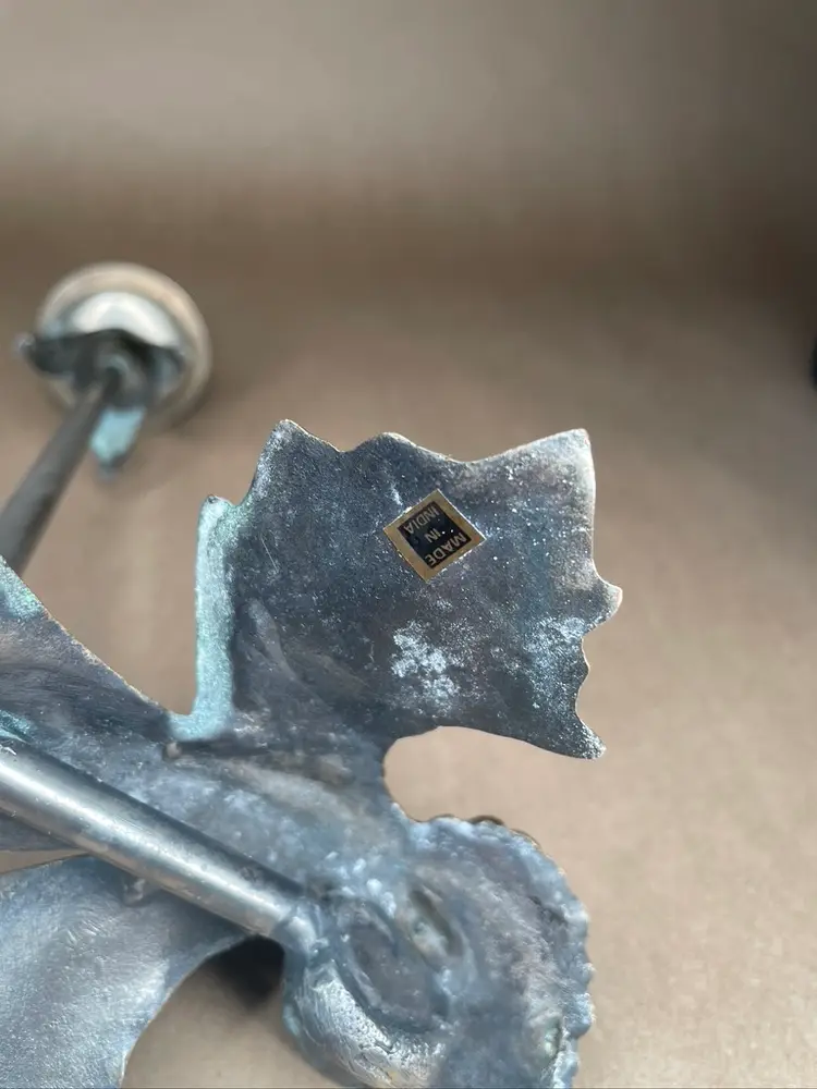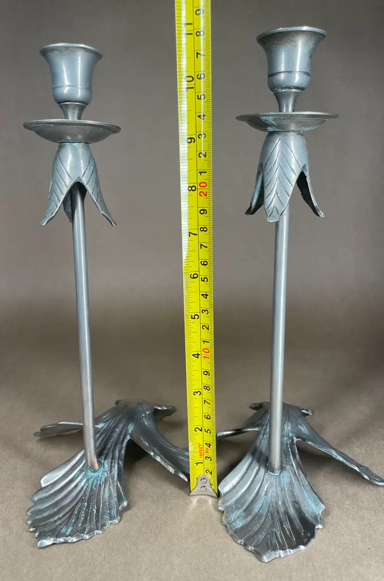 See photos for condition and measurements. Purposefully, left the patina on the candle holders. Made in India.