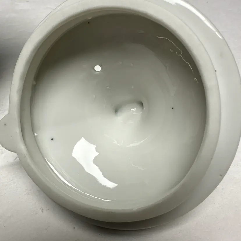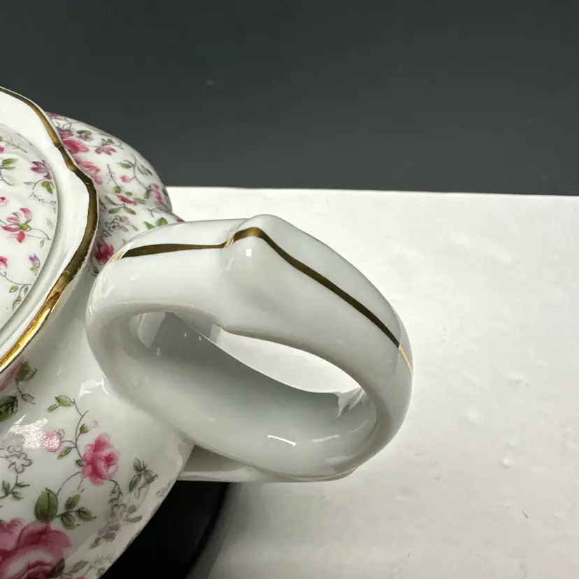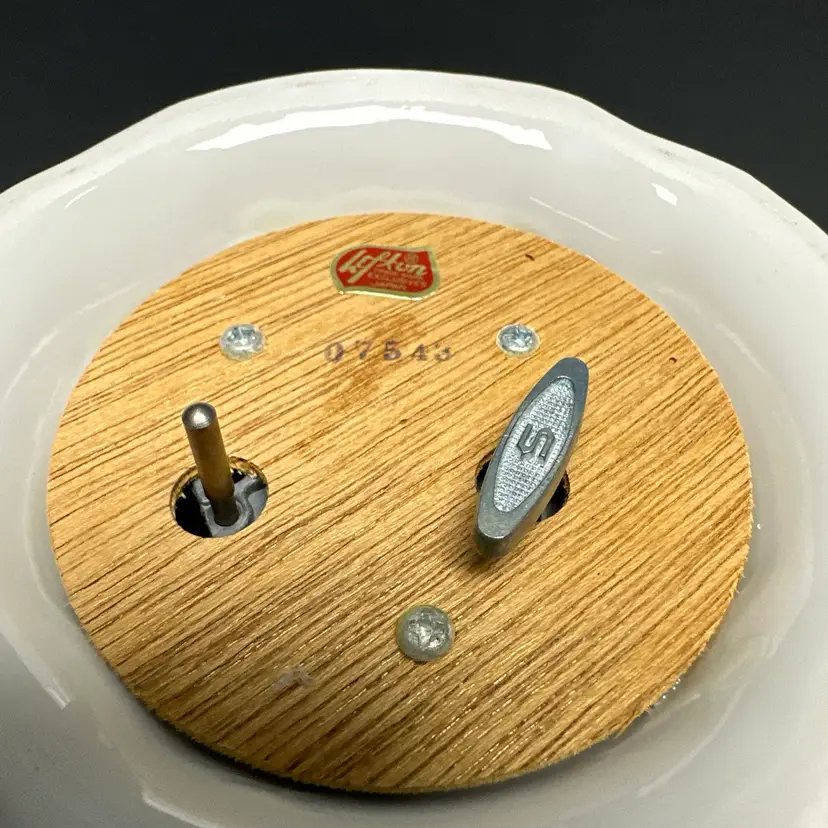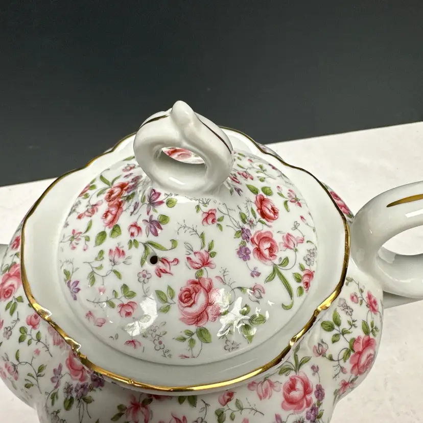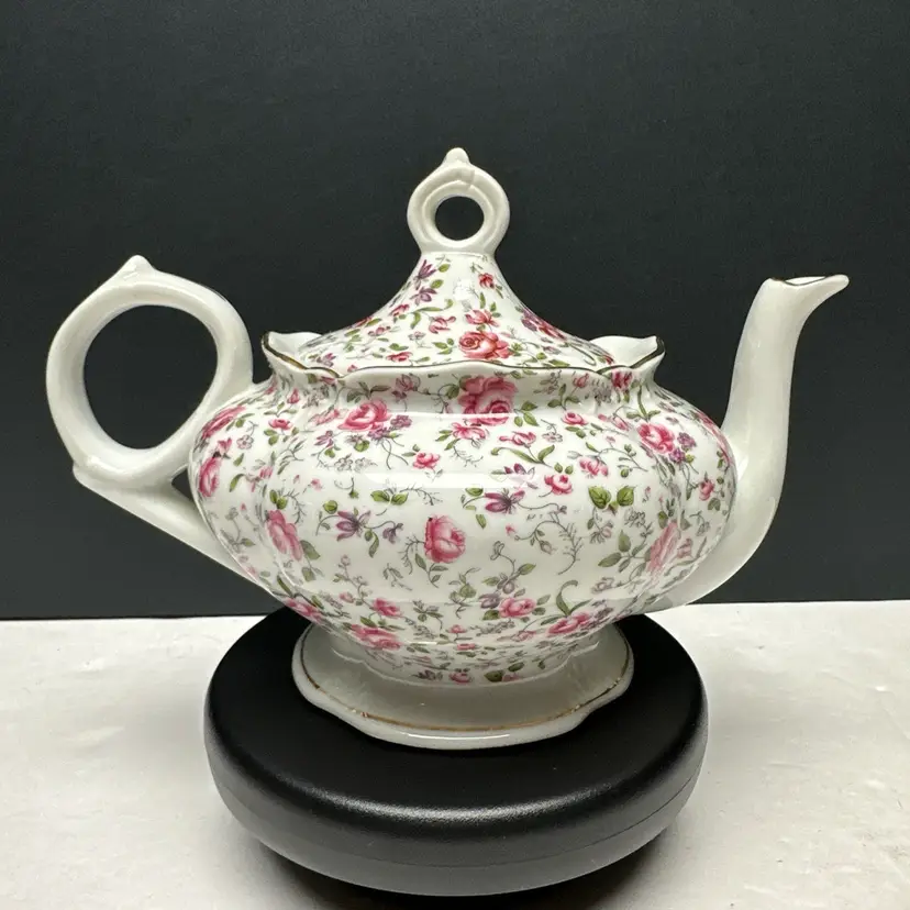 Preowned but in excellent condition. No cracks, chips or crazing. Music plays “Memories”. Teapot is made to only play the music when it is lifted up to serve the tea. How cute. See the video for the music playback. Measure’s approximately 6” tall with the lid on and 9” long. Beautiful vintage piece.