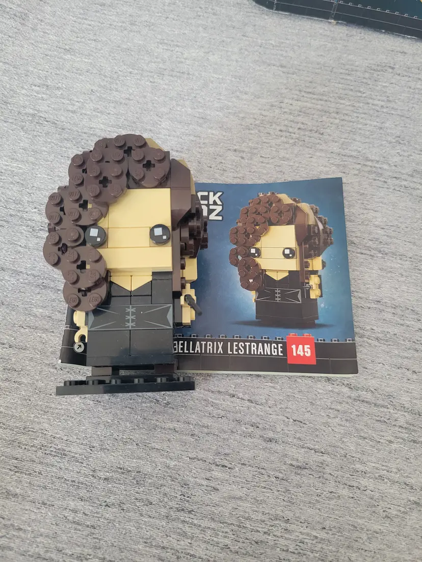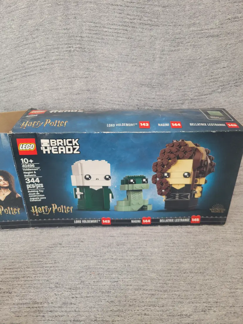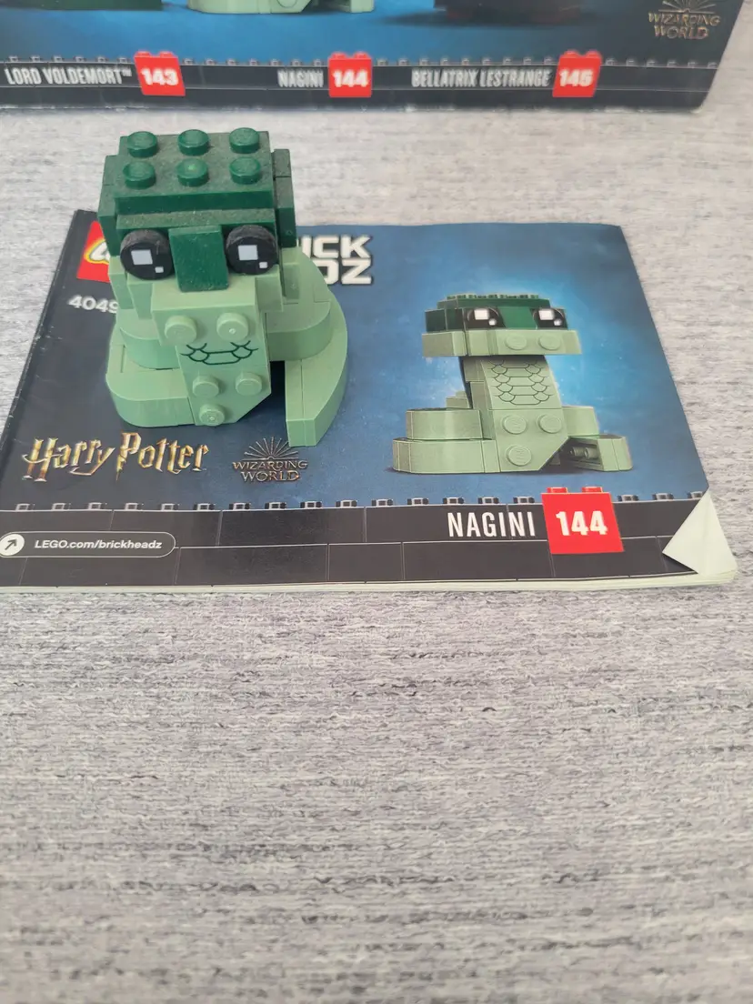 The LEGO® BrickHeadz™ Voldemort™, Nagini & Bellatrix (40496) set lets kids construct LEGO BrickHeadz models of the Hogwarts™ villains in all their dark, magical detail. Build, play and display – Treat LEGO® builders and Harry Potter™ fans aged 10 and up to this creative construction gift. Eye-catching models – This 344-piece set features Voldemort™, who stands over 2 in. (7 cm) tall, Bellatrix, who stands over 3 in. (9 cm) tall, and Nagini, who stands over 1 in. (5 cm) tall.