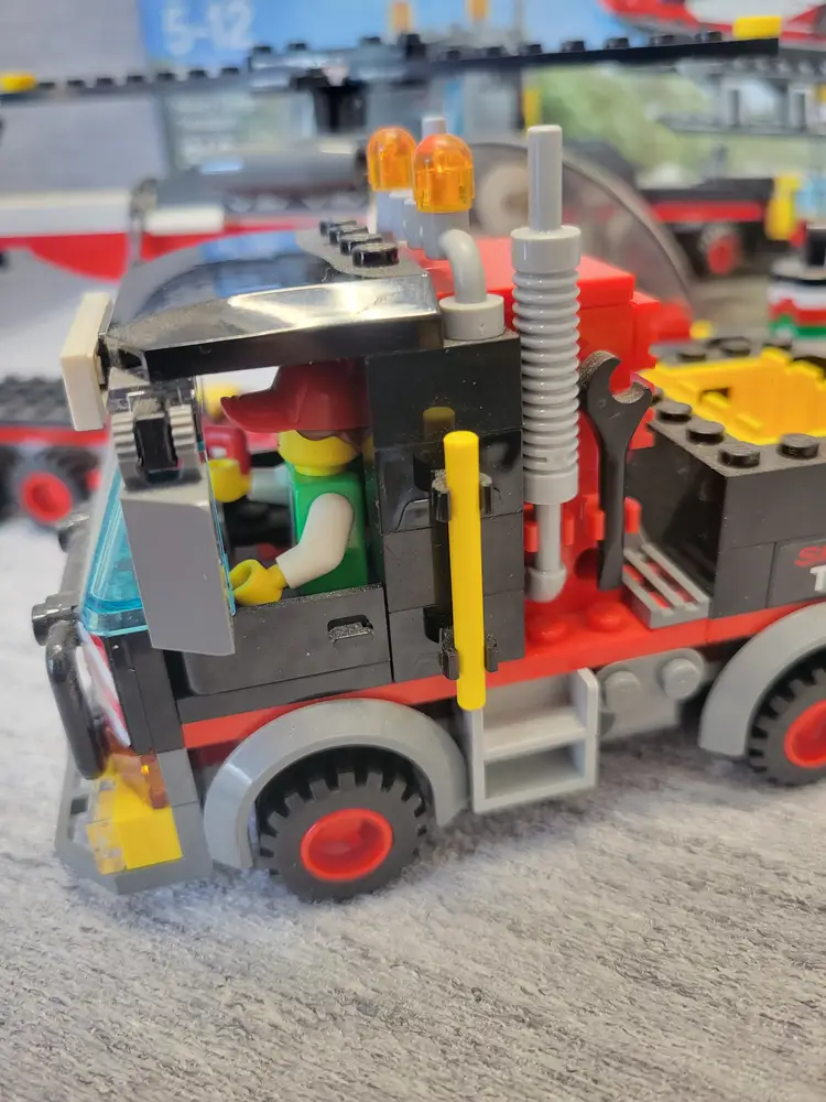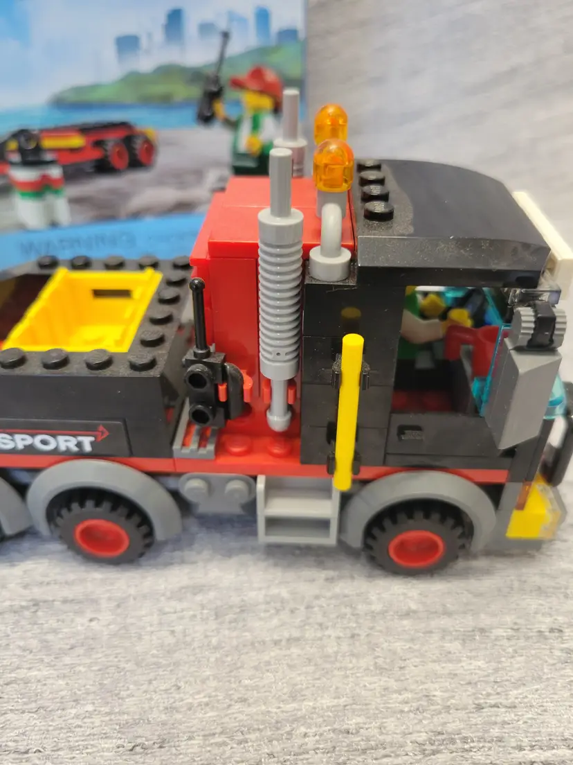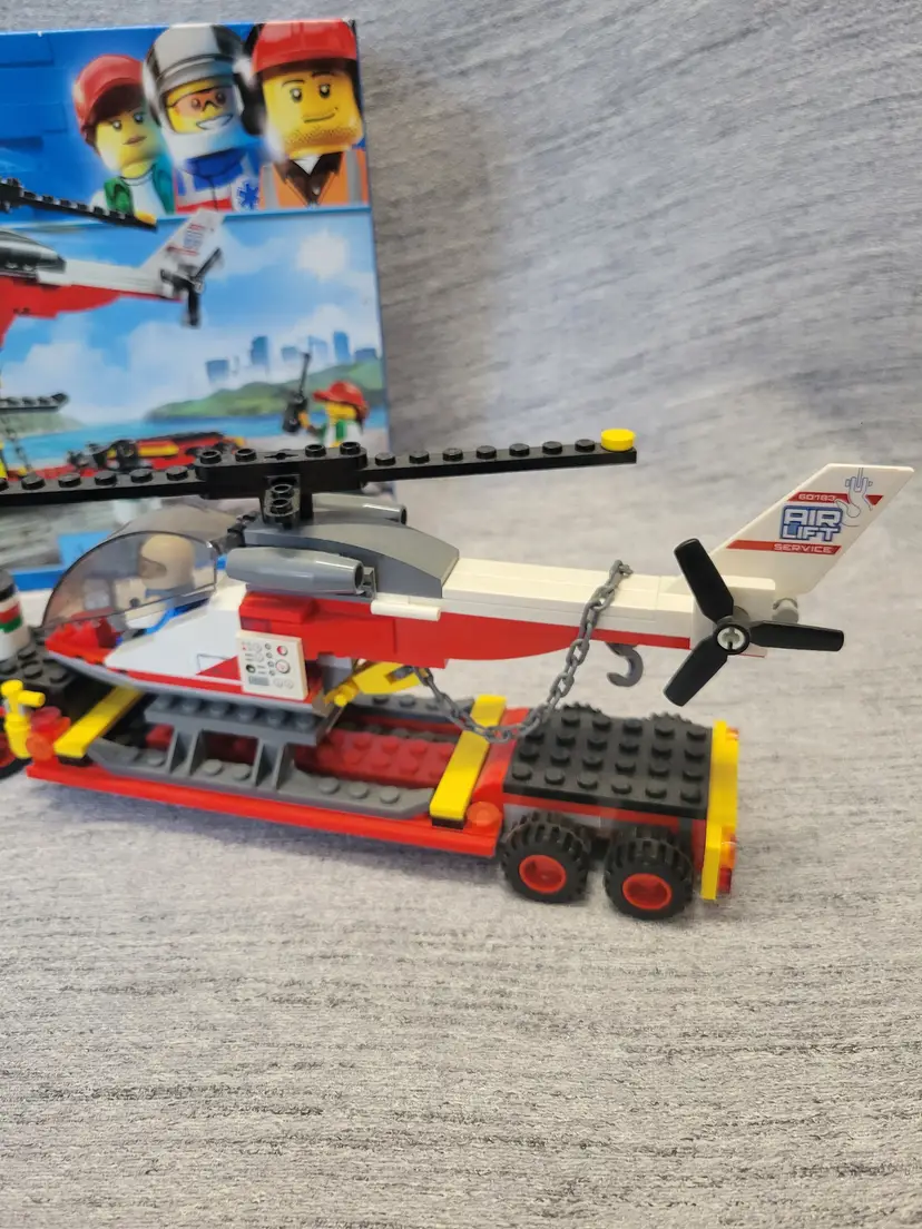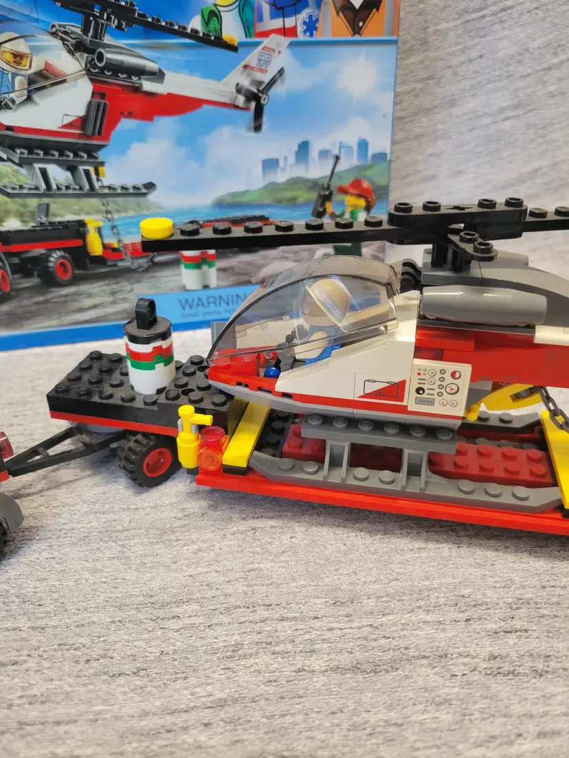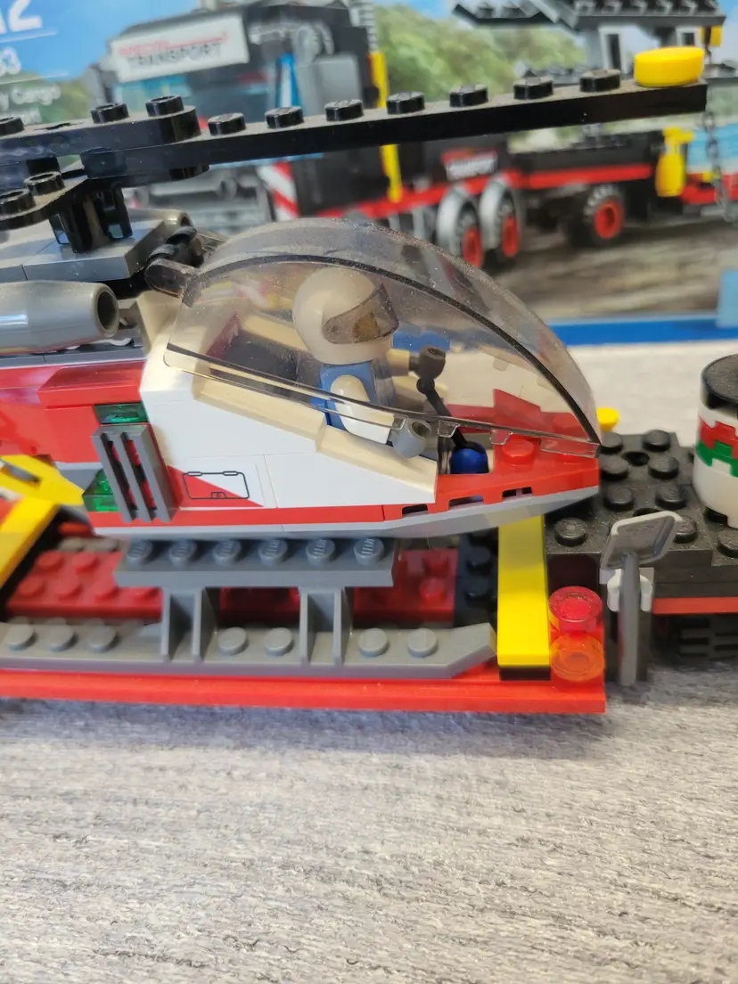Head to the worksite outside the city limits with the LEGO® City 60183 Heavy Cargo Transport, featuring a heavy truck with opening cab, toolbox and bull bars, a detachable extended flatbed trailer truck toy, plus a helicopter with spinning rotors, opening cockpit and a chain. This great toy helicopter transport model building toy includes 2 minifigures. Accessory elements include a mug, box, wrench, shovel, walkie-talkie, fire extinguisher and an oil barrel. Truck measures over 3” (8cm) high, 5” (14cm) long and 2” (6cm) wide.. Flatbed trailer measures over 1” (3cm) high, 10” (27cm) long and 1” (5cm) wide. Helicopter measures over 3” (8cm) high, 8” (21cm) long and 1” (4cm) wide.