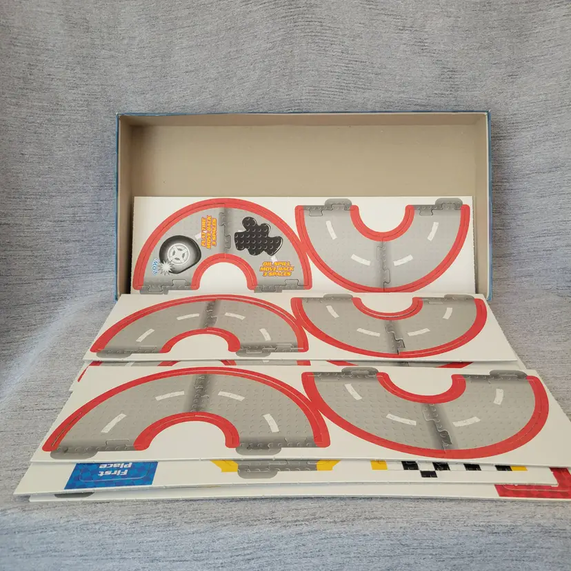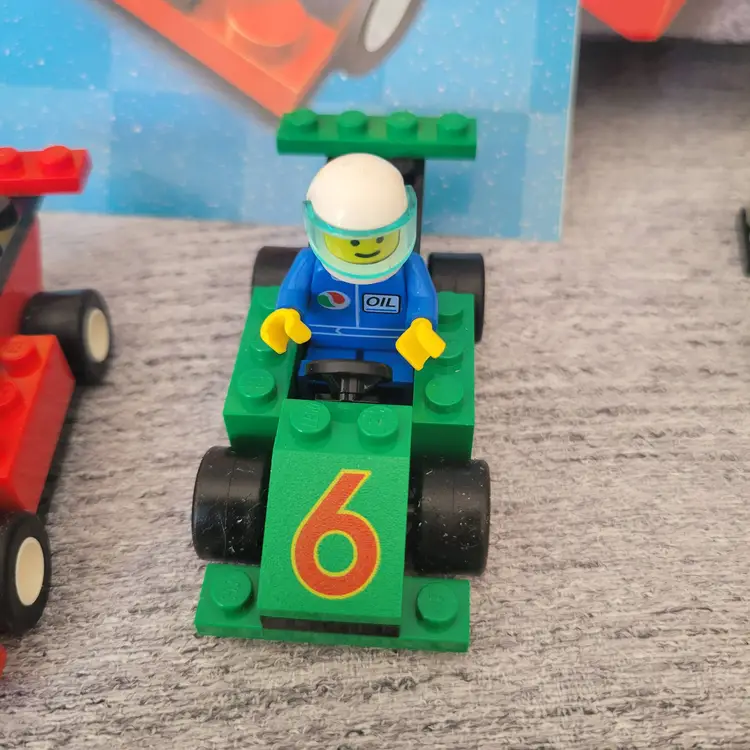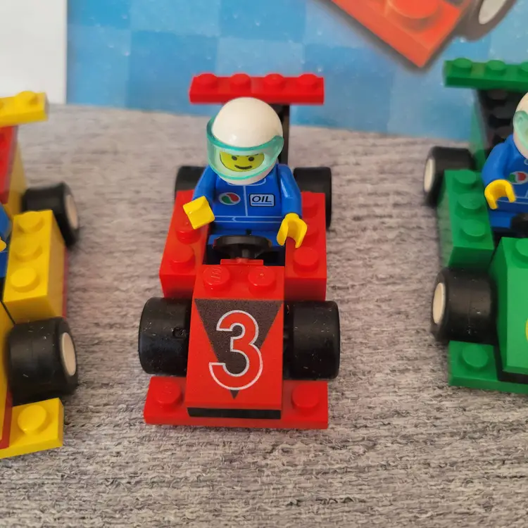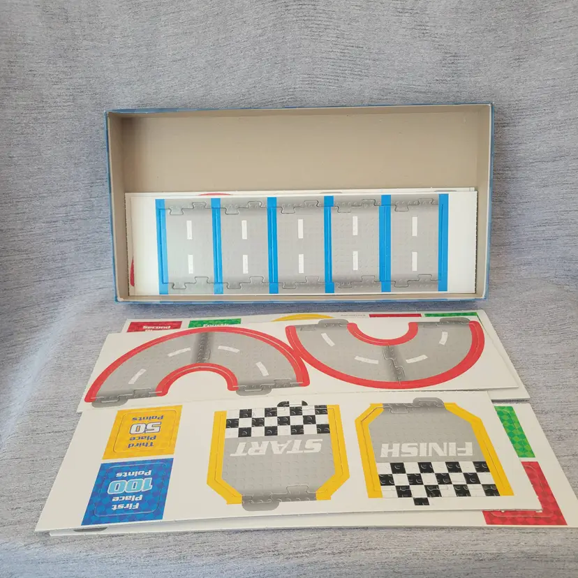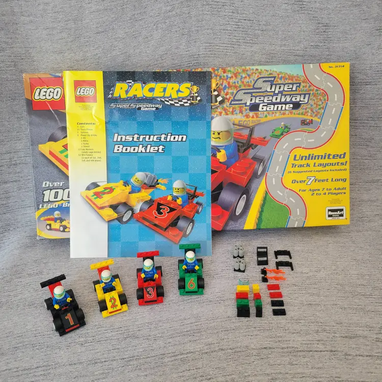 Six track layouts are shown, but there are unlimited layouts that can be created! Over seven feet of total track length! - Build the included race cars or custom design your own with parts from your own collection! - Includes four LEGO race car driver minifigures! - For 2-4 players - Contains 110 LEGO pieces, for ages 7+