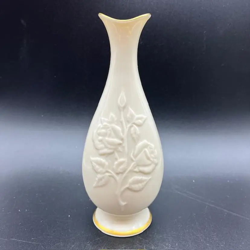Elegant vintage ceramic vase featuring a beautiful embossed rose design. Perfect for adding a touch of classic charm to your home decor. Perfect piece with no condition issues. Made in USA