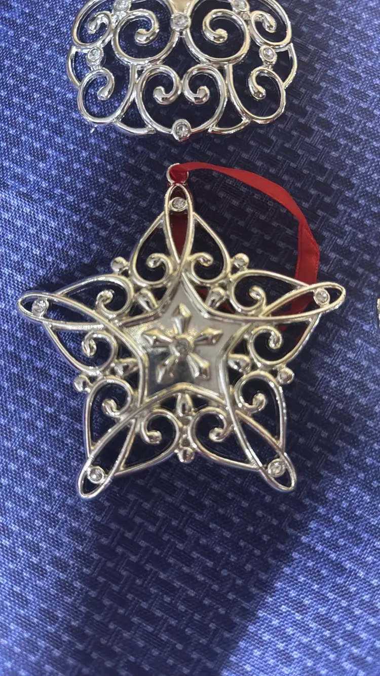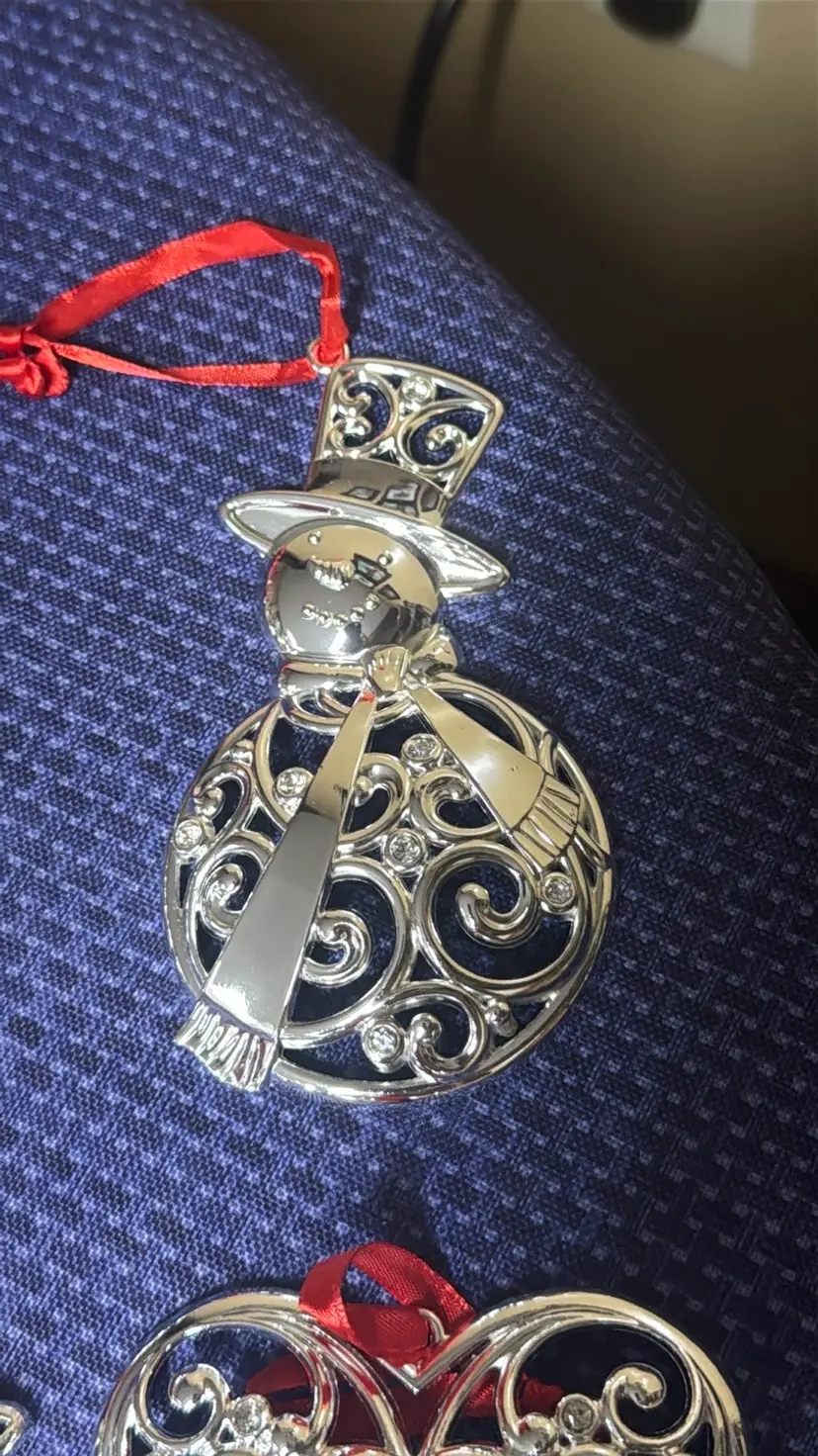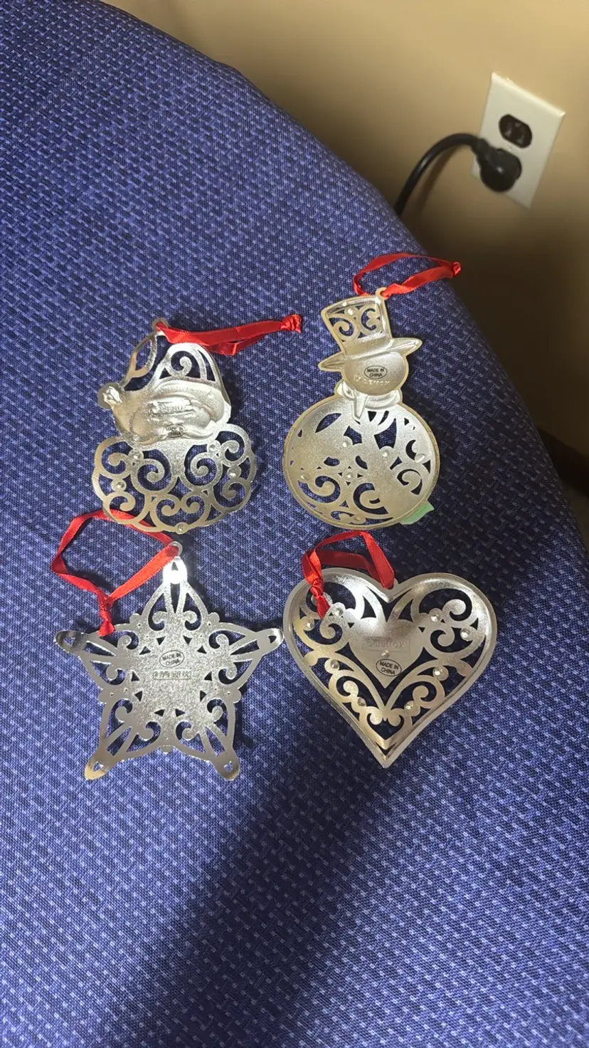 4 LENOX Sparkle & Scroll Clear Approximately 3.25” to 5” tall Crystal Ornaments in Original Boxes Silverplate Enhance your holiday decor with this elegant silver ornament set. Featuring intricate designs and vibrant red accents, these ornaments add a festive touch to any setting. All are new in original boxes (2) (9749425mb3)