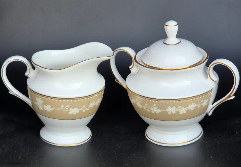 Lenox made in USA Bellina Gold sugar and creamer. In unused condition.