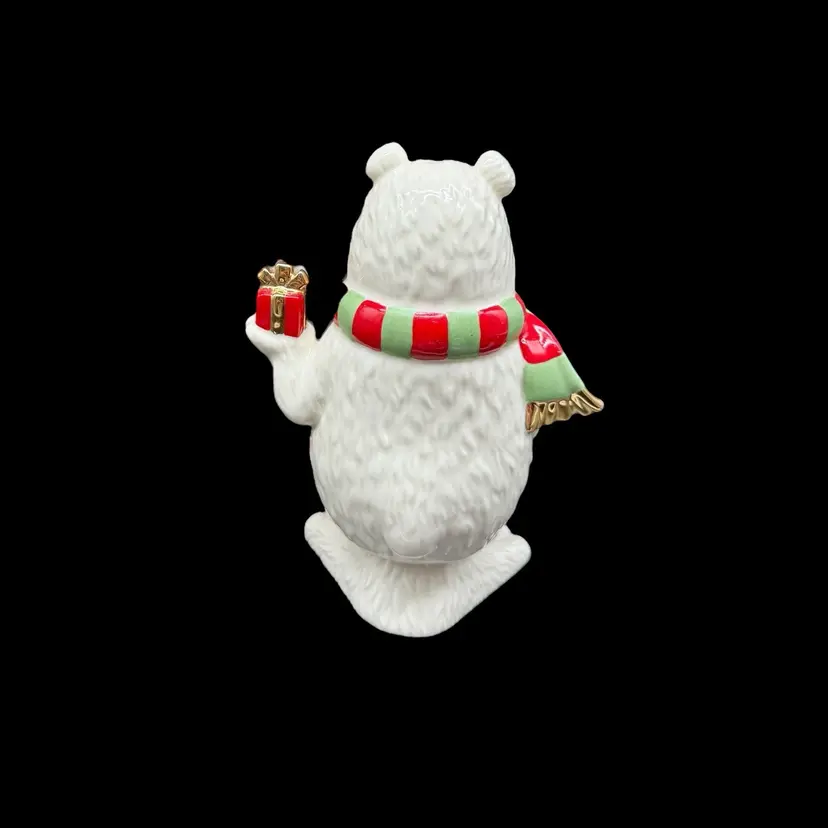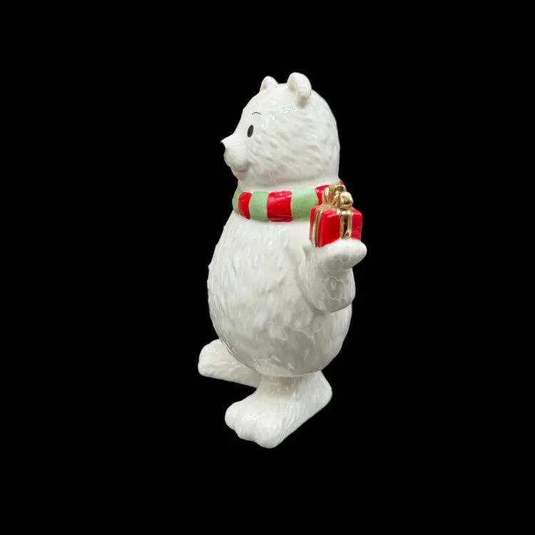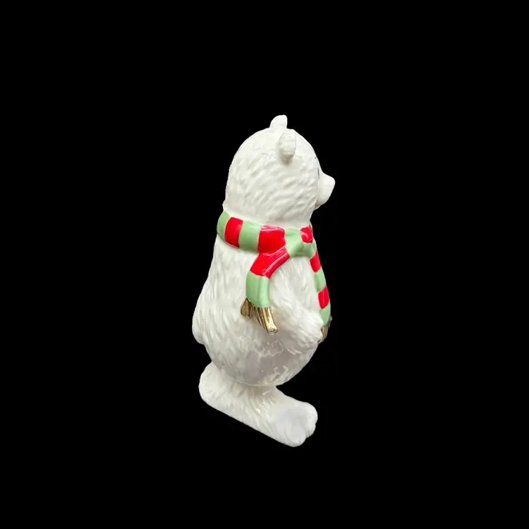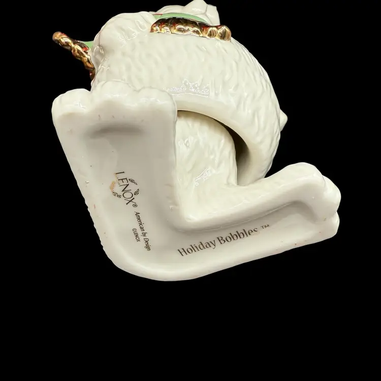 The Lenox Holiday Bobbles Polar Bear With Scarf Christmas Bobble Head Figurine is a festive and charming collectible figurine perfect for Christmas decor. Made of porcelain with a glossy finish, this multicolor figurine features a polar bear wearing a scarf, adding a touch of whimsy and holiday cheer to any space. This traditional style figurine is a delightful addition to any Christmas display or bear collection, and is sure to bring joy and nostalgia to collectors and holiday enthusiasts alike.