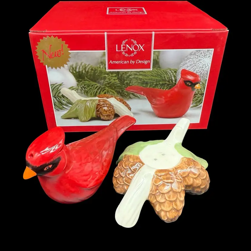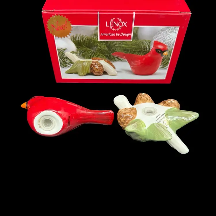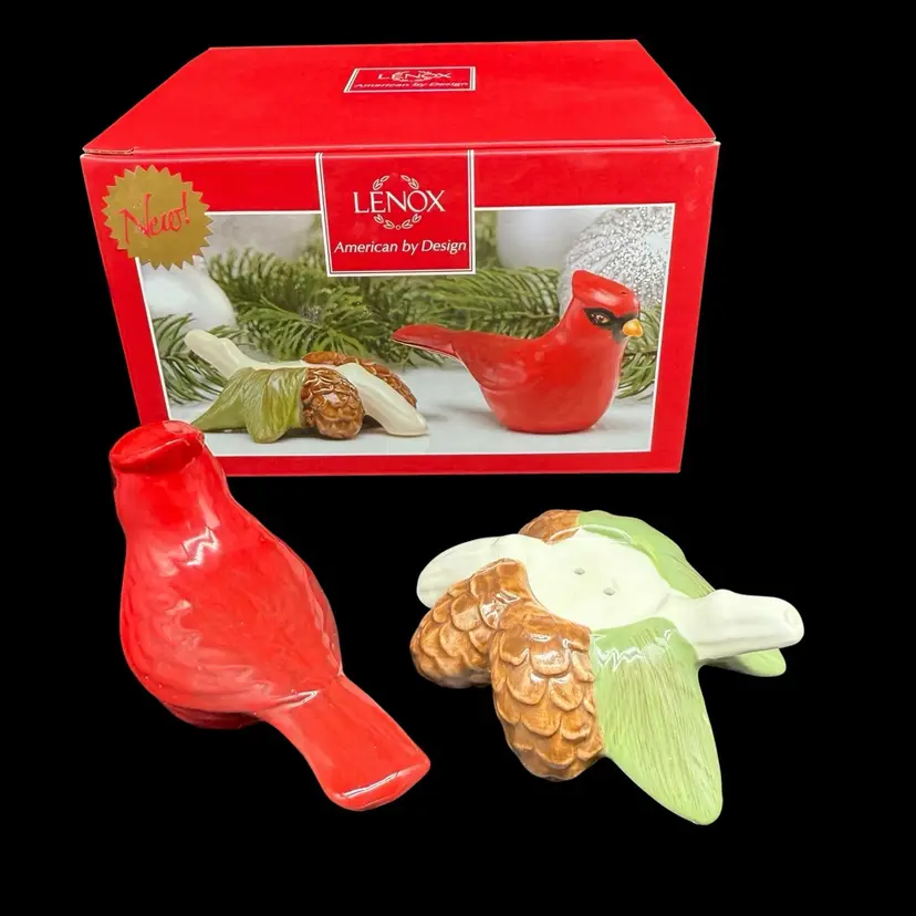 The Lenox Winter Greetings Cardinal Salt & Pepper Shaker Set is a charming addition to any kitchen or dining table. Made of high-quality porcelain, these shakers feature a festive winter-themed design with a multicolor bird pattern. This original set includes a pepper shaker and a salt shaker, making it both functional and decorative. Perfect for collectors or those looking to add a touch of kitsch style to their home, these shakers are a delightful way to spice up your meals.