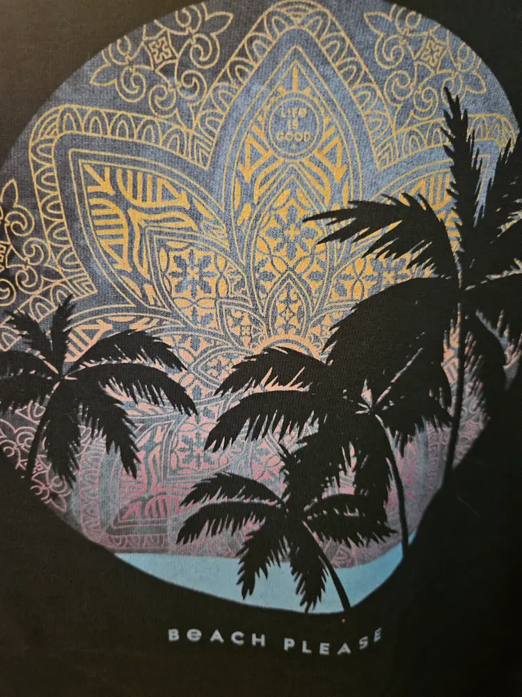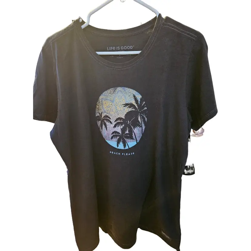 Life Is Good Black Tee Beach Please Large