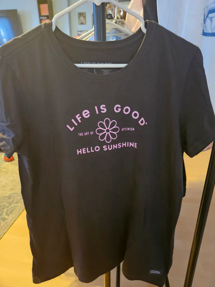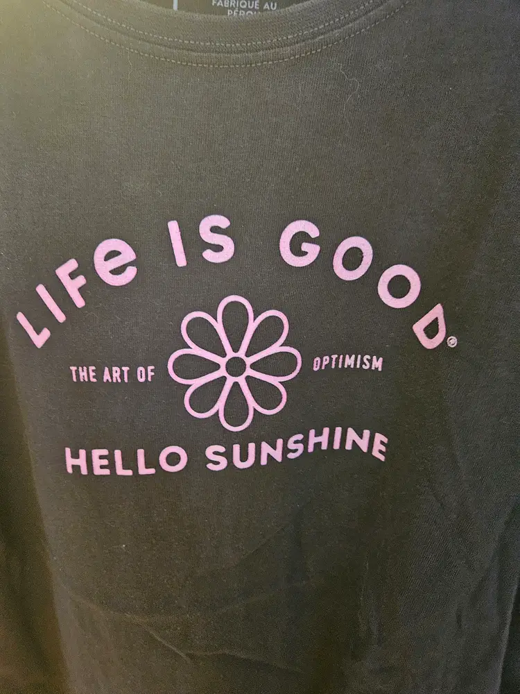 Life Is Good Black Tee Hello Sunshine Large