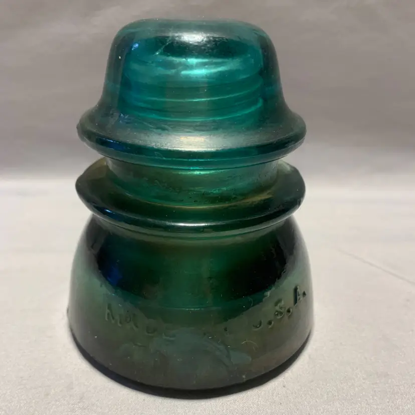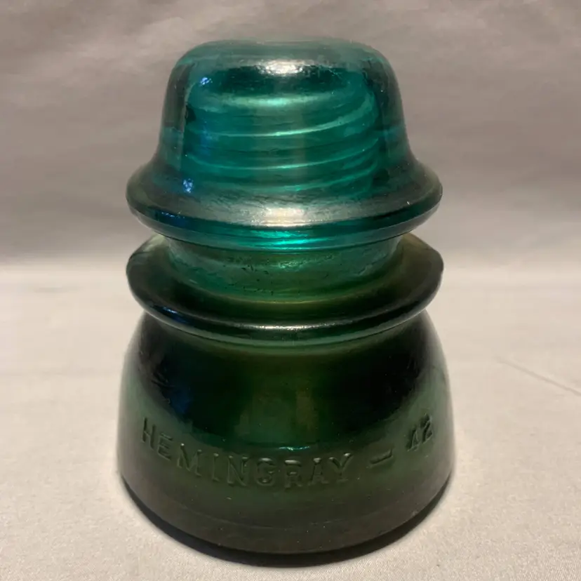 The Aqua Hemingray 42 Electrical Glass Insulator is a classic and collectible piece made in the USA. Featuring a beautiful green color, this insulator is a perfect addition to any collection. The Hemingray maker and the RDP base type add to its authenticity and appeal. With its unique design and historical significance, this glass insulator is sure to be a standout piece in any collection.