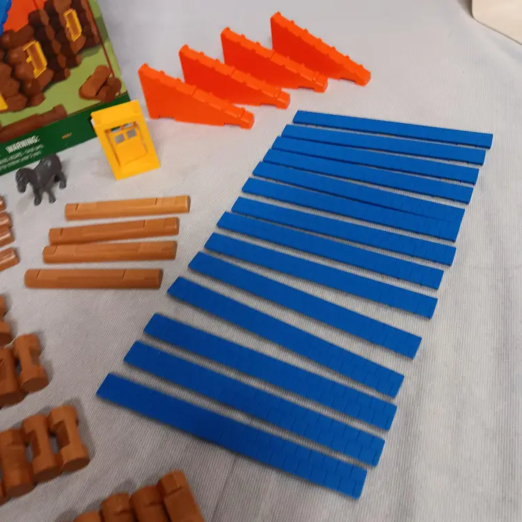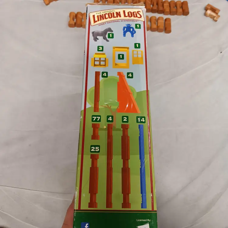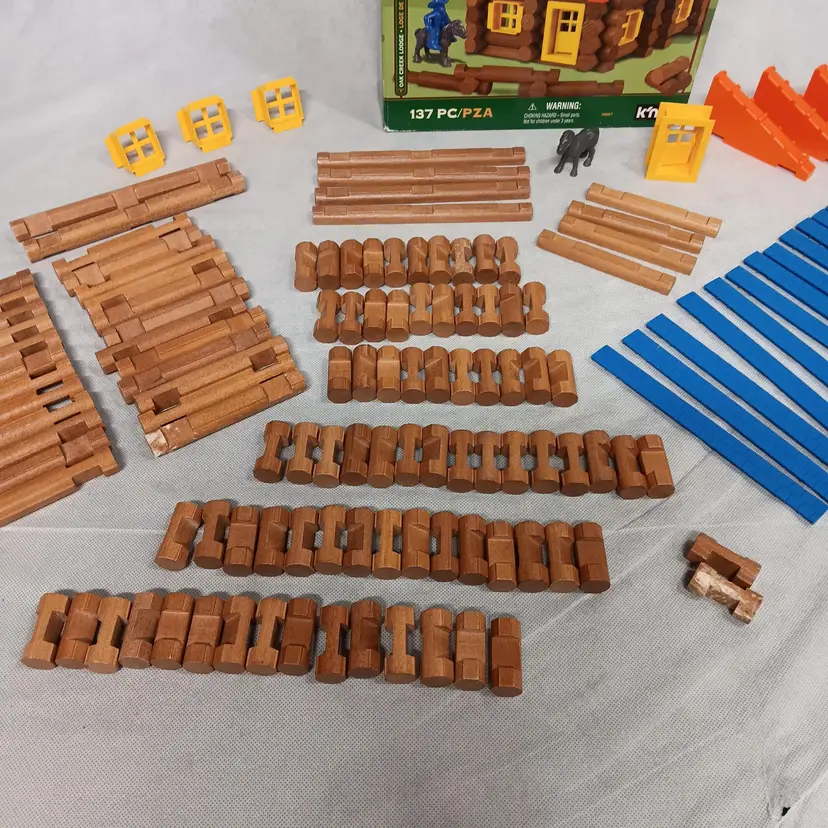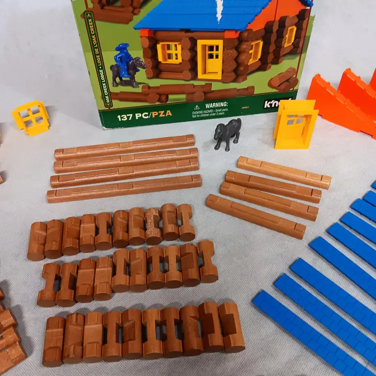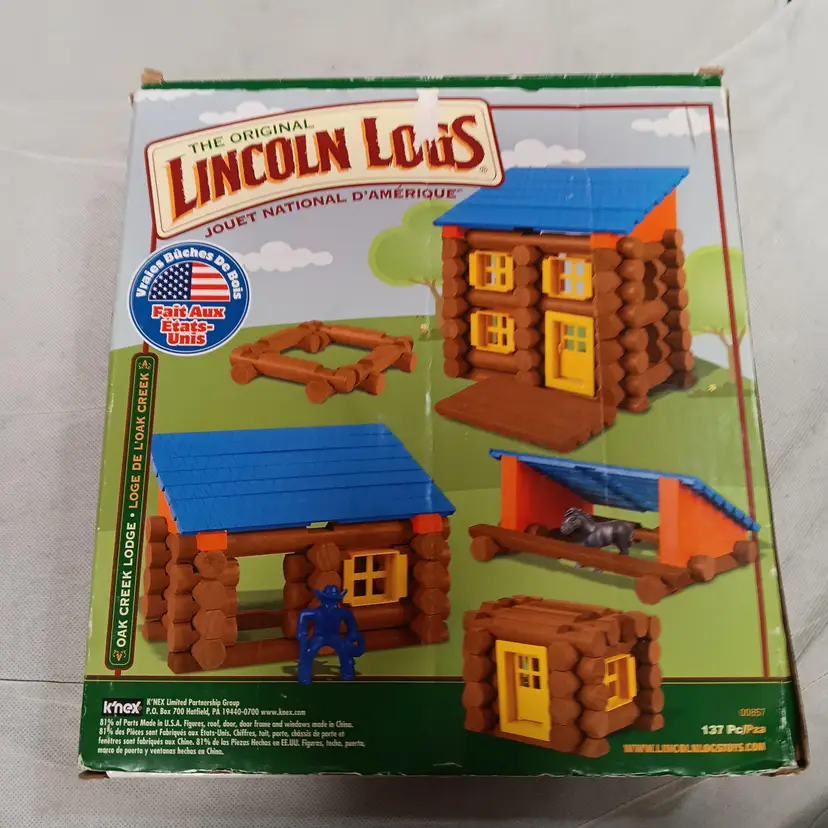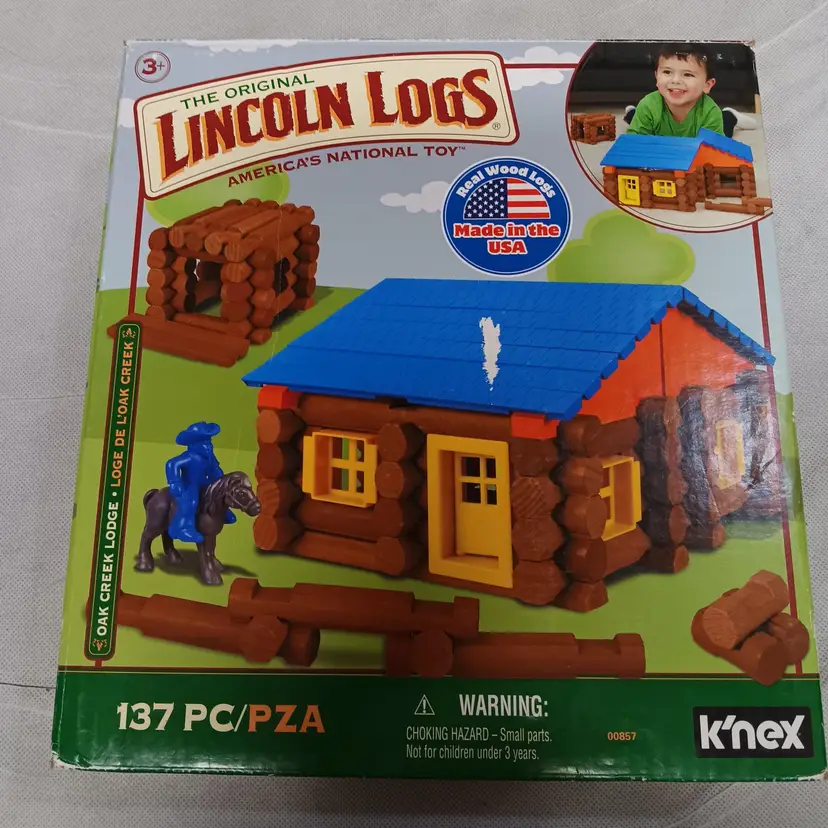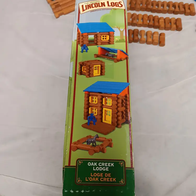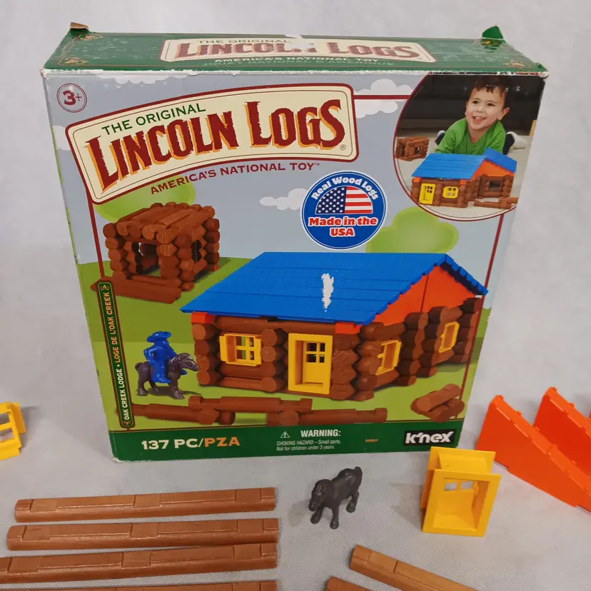 The Original Lincoln Logs Oak Creek Lodge Kit With Original Box Nearly Complete 135 of 137 Pieces 2 Missing Pieces: Cowboy 4-3/4" Log 2 Logs Do Show Damage Likely From Puppy/Dog See Pictures Thank You For Looking