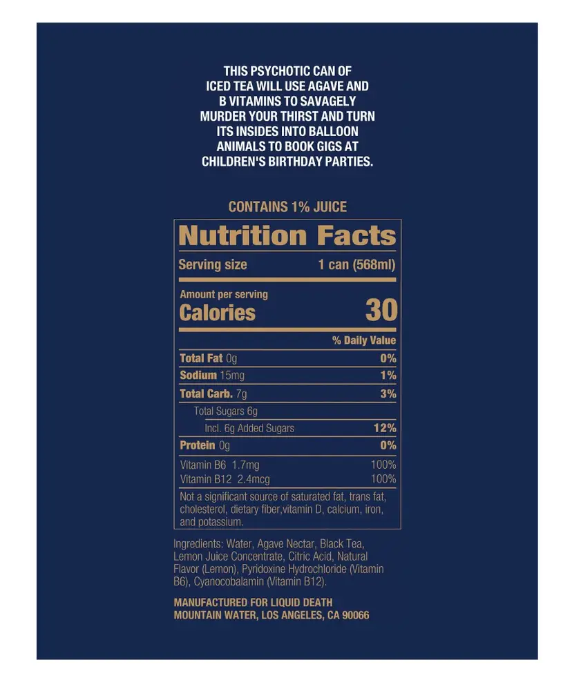 These psychotic cans of half iced black tea, half lemonade are dead set on using natural agave and B vitamins to savagely murder your thirst and turn its insides into balloon animals to book gigs at children’s birthday parties.