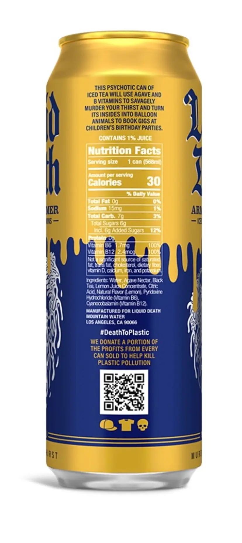 Liquid Death Iced Black Tea, Armless Palmer 19.2 oz King Size Can