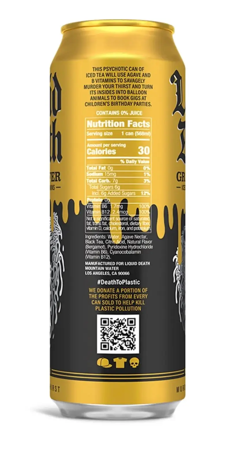 Liquid Death Iced Black Tea Grim Leafer Sweet Tea 19.2 oz King Size Can