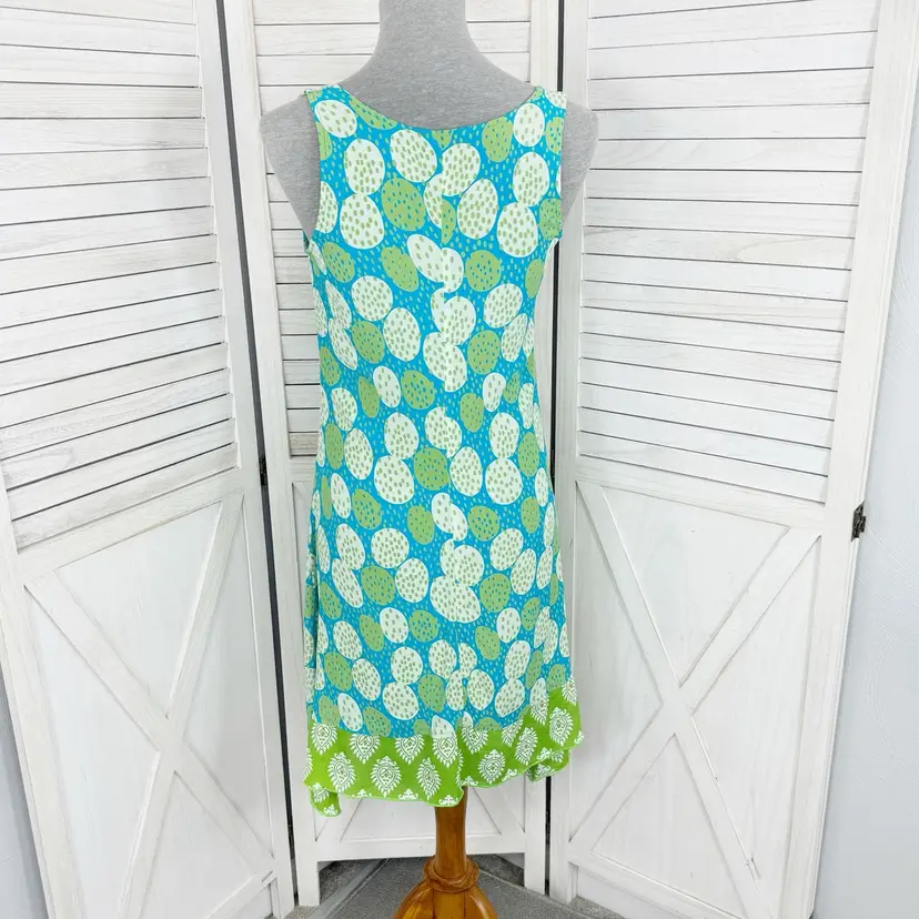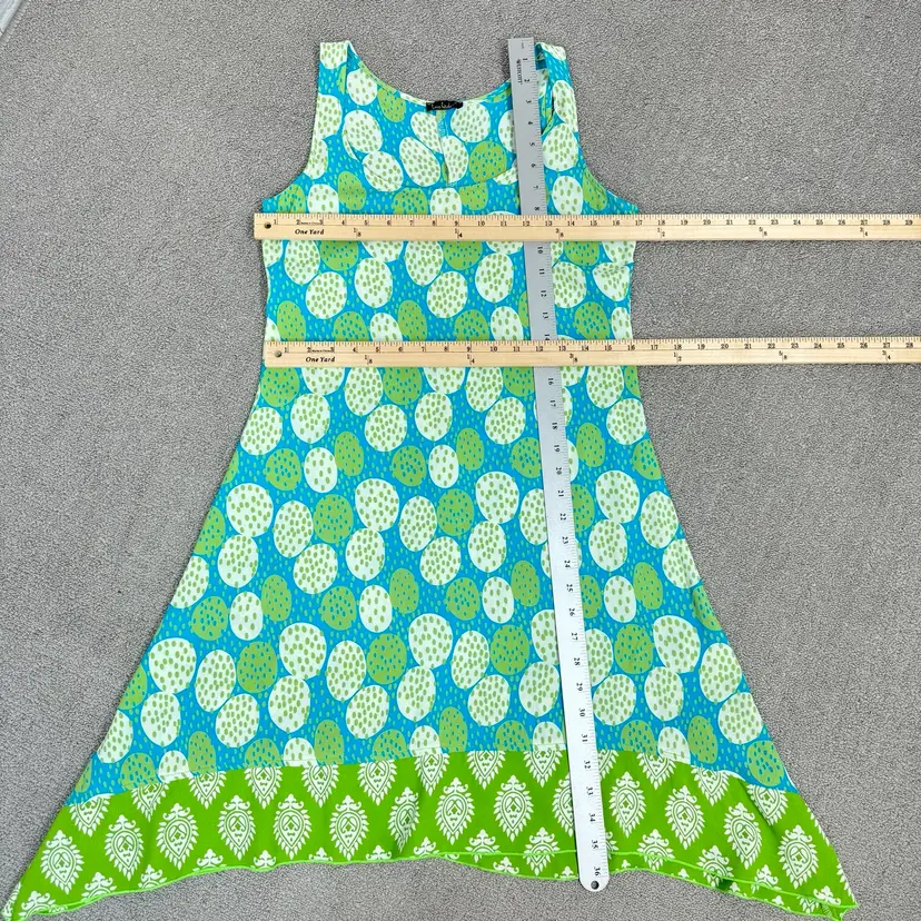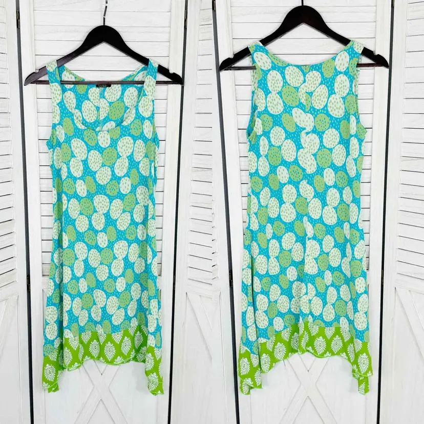 Loco Lindo Vintage Multi Print Scarf Hem Slip Dress Teal White Green