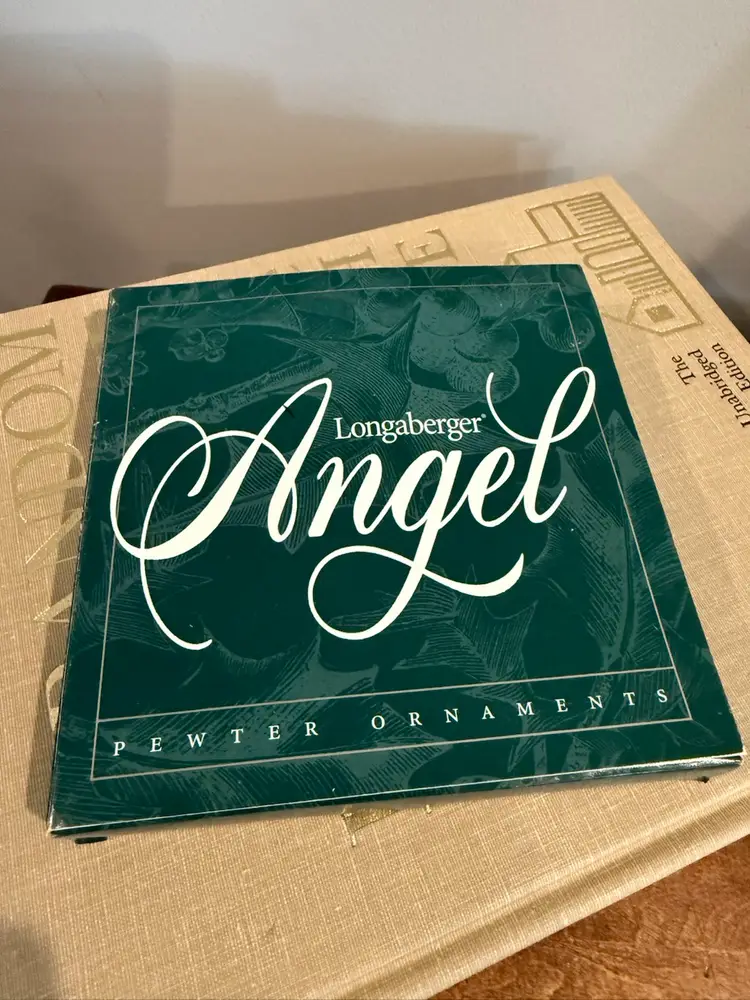 Longaberger 1998 Pewter Angel Ornaments, a complete set of four featuring "Peace," "Hope," "Love," and "Joy." These collectible holiday decorations are crafted from polished pewter and come in their original display box. Made in the USA, each angel carries a unique message. The set is in new condition, perfect for gifting or adding to a holiday collection. The angels are designed to enhance home decor, gift packages, wreaths, or Christmas trees. Item number 71757.