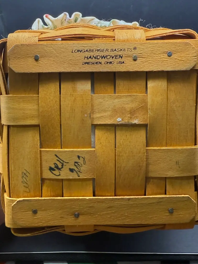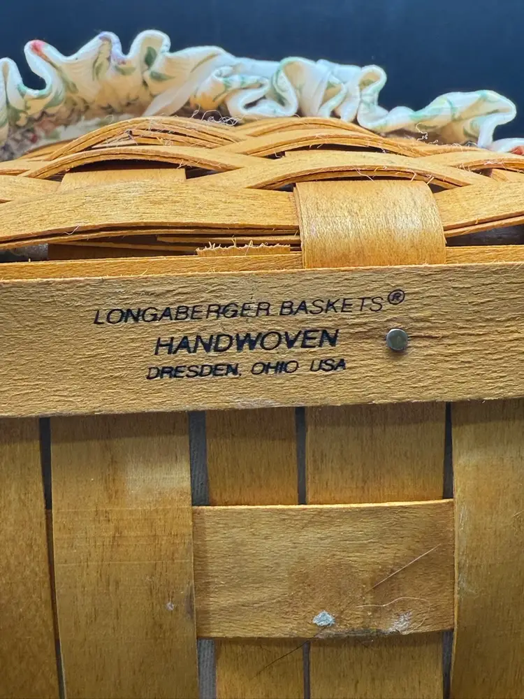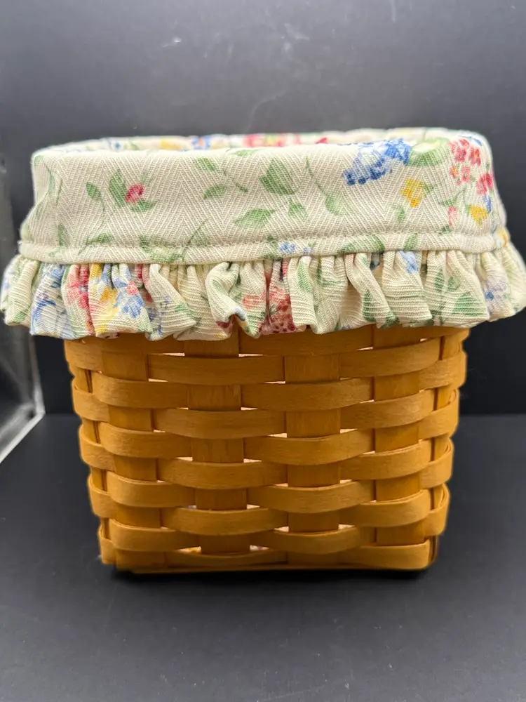 Beautiful Longaberger tissue basket complete with floral lining and ceramic tissue sign.