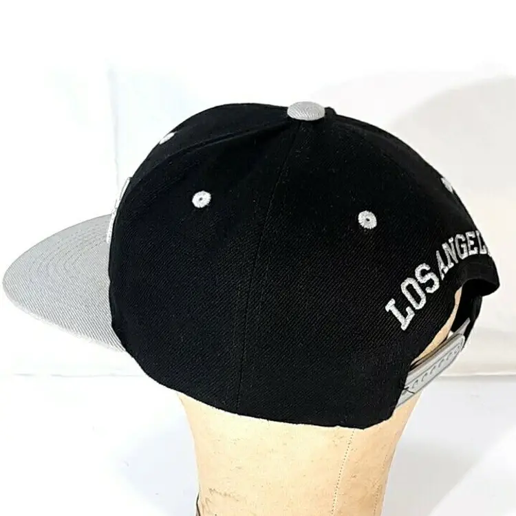 Pattern: Solid Character: Los Angeles Occasion: Casual Size: Adjustable Signed: No Color: Black Material: Acrylic Fabric Type: Canvas Vintage: No Brand: Flag & Symbol Personalize: No Department: Men Unit Type: Unit Style: Snapback Theme: Sports Features: Adjustable Country/Region of Manufacture: China Season: Fall, Spring, Summer, Winter Unit Quantity: 1 Character Family: none Handmade: No